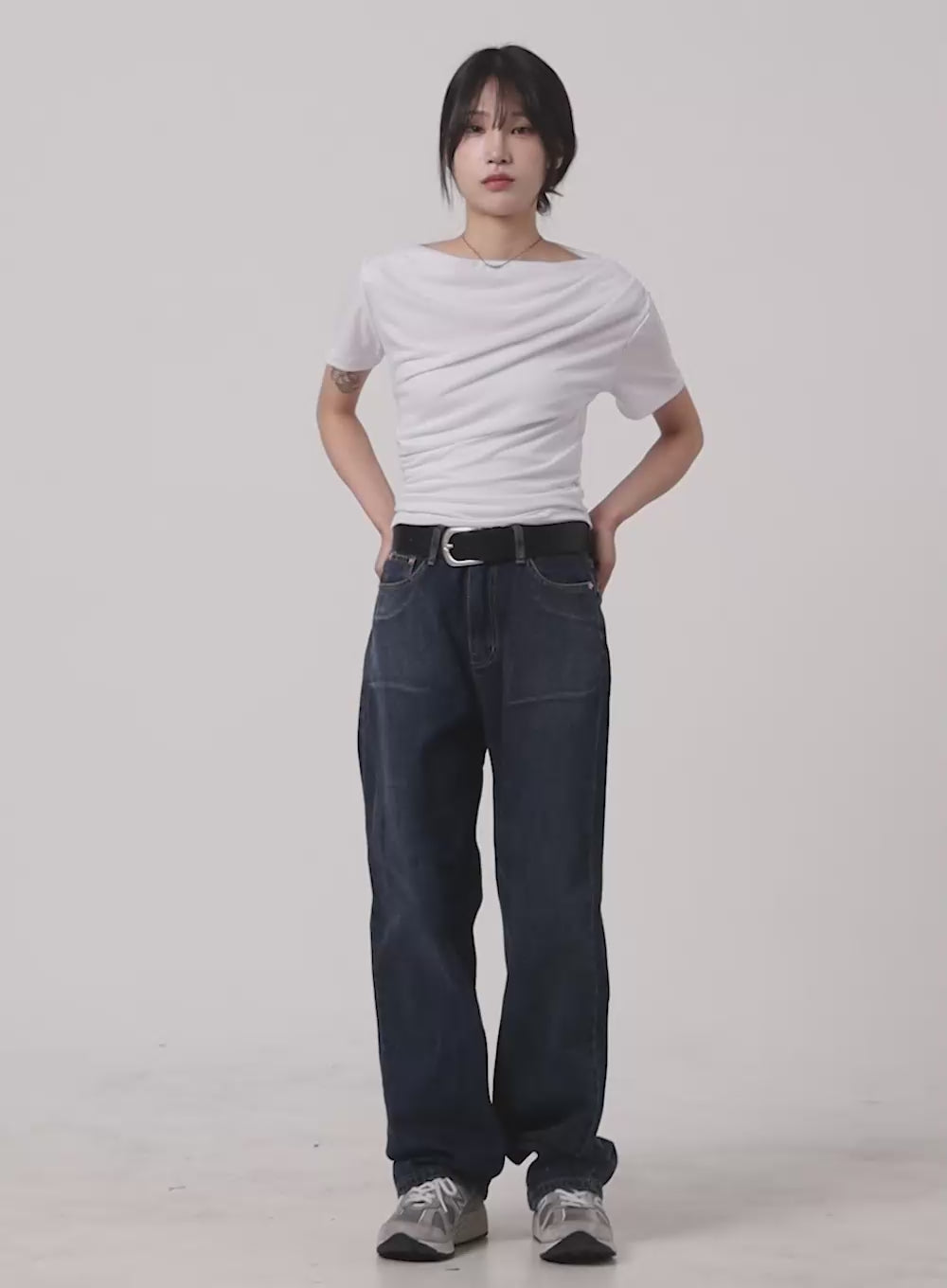 Unbalanced Shirred Tee CA408