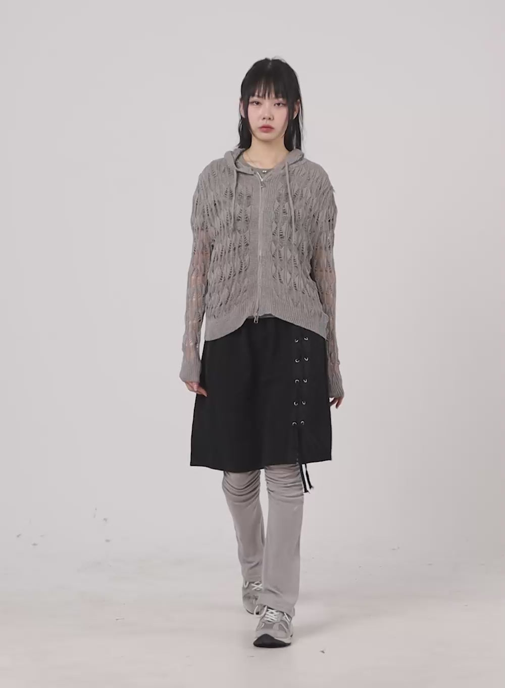hollow-out-knit-hoodie-jacket-ca401 / Gray