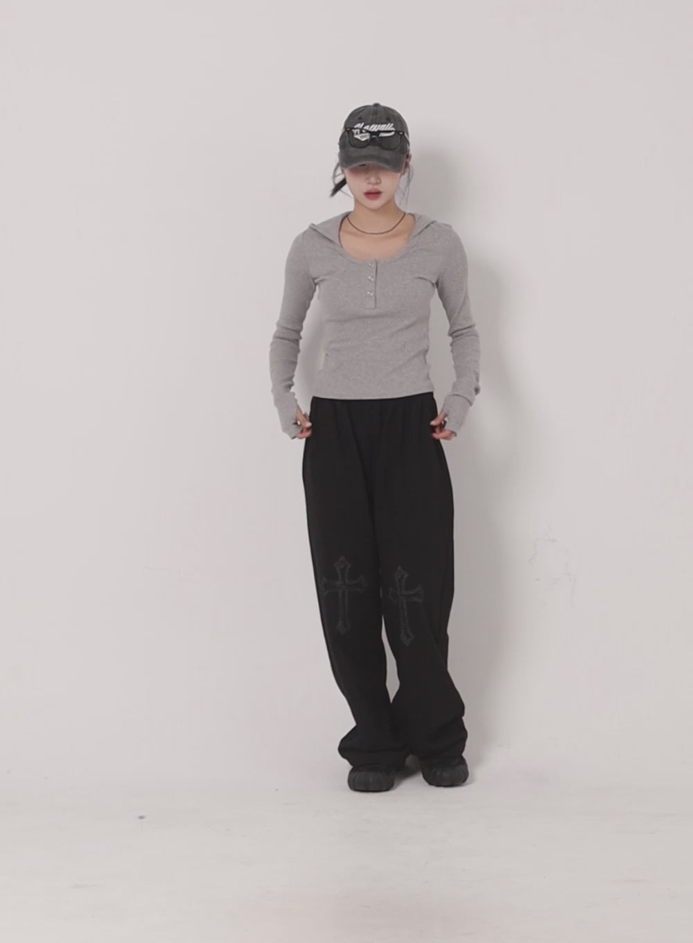 cotton-pintuck-wide-fit-sweatpants-iy516 / Gray