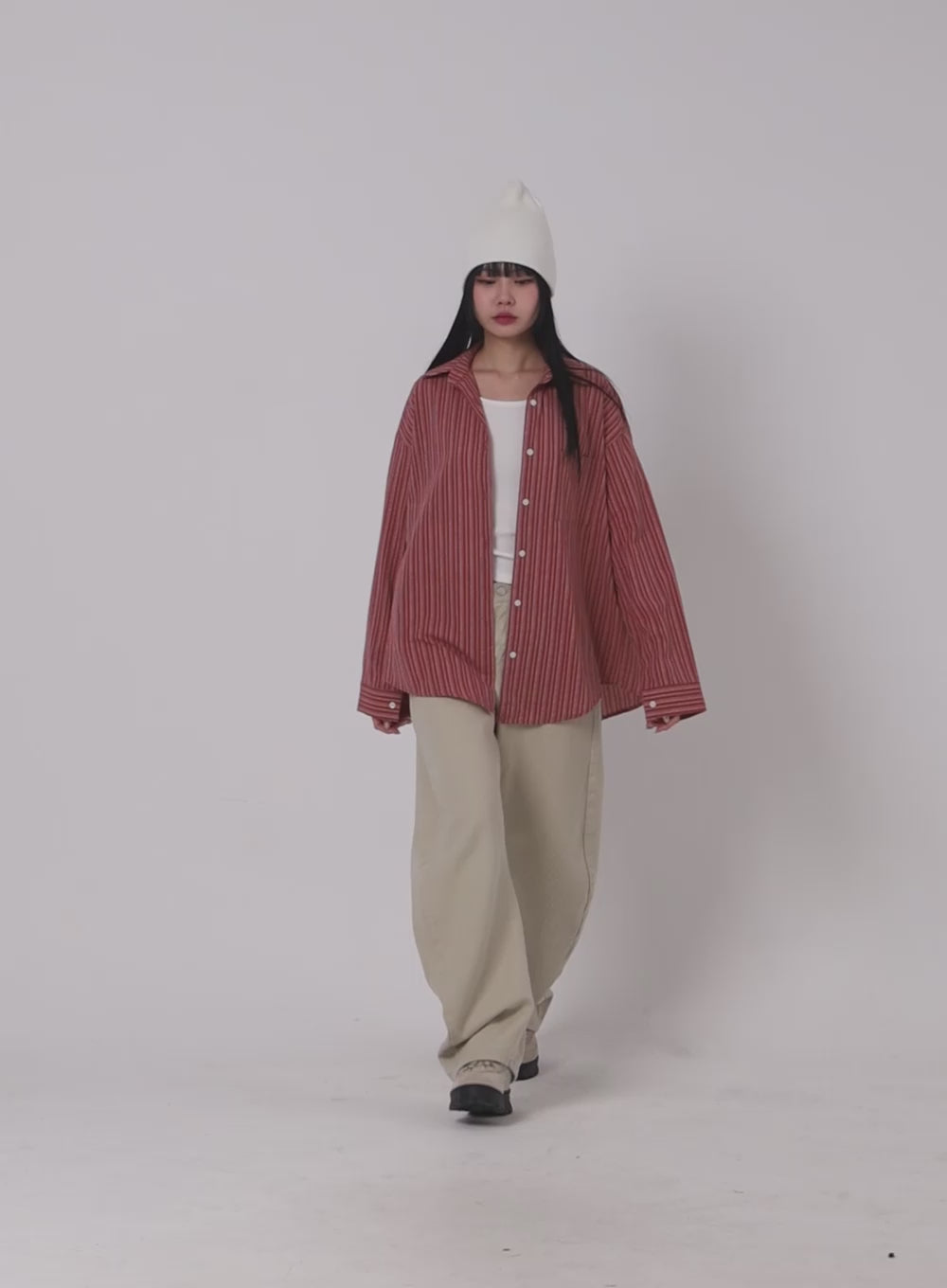 oversized-striped-short-sleeve-polo-shirt-cy514 / Red