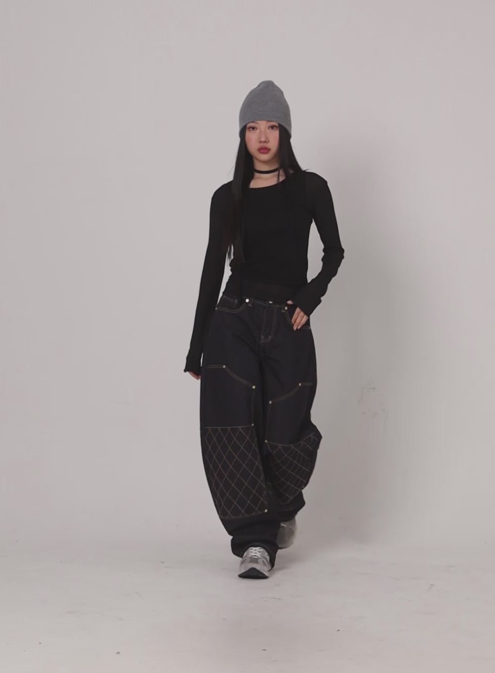 stitched-wide-denim-jeans-cf408 / Dark blue