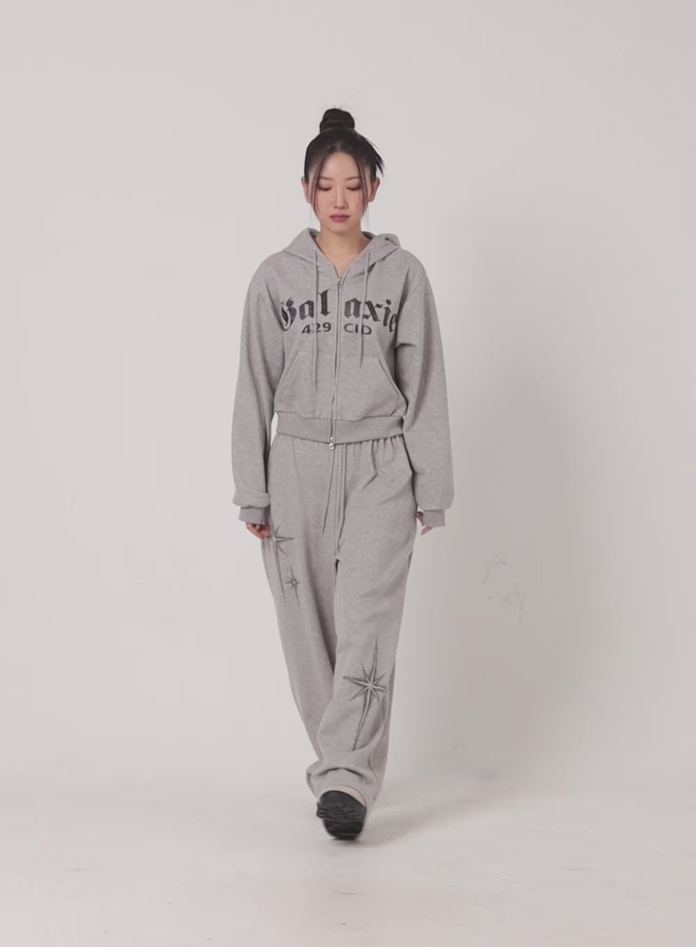 galaxy-lettering-zip-hoodie-with-drawstring-cj429 / Gray