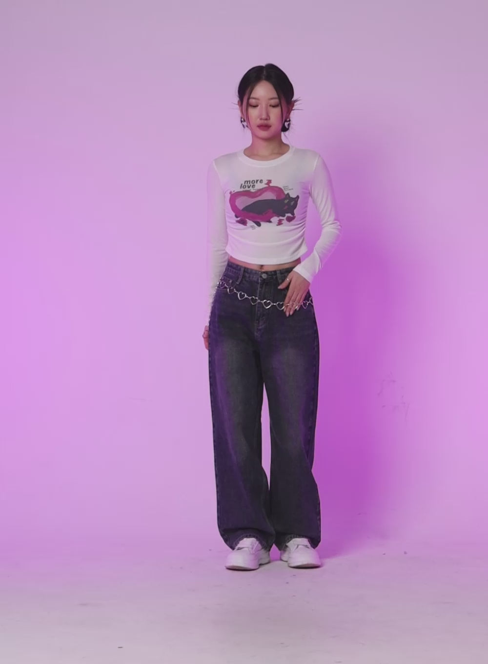 Terry Round Neckline Universal Cat Oversized Sweatshirt IJ411