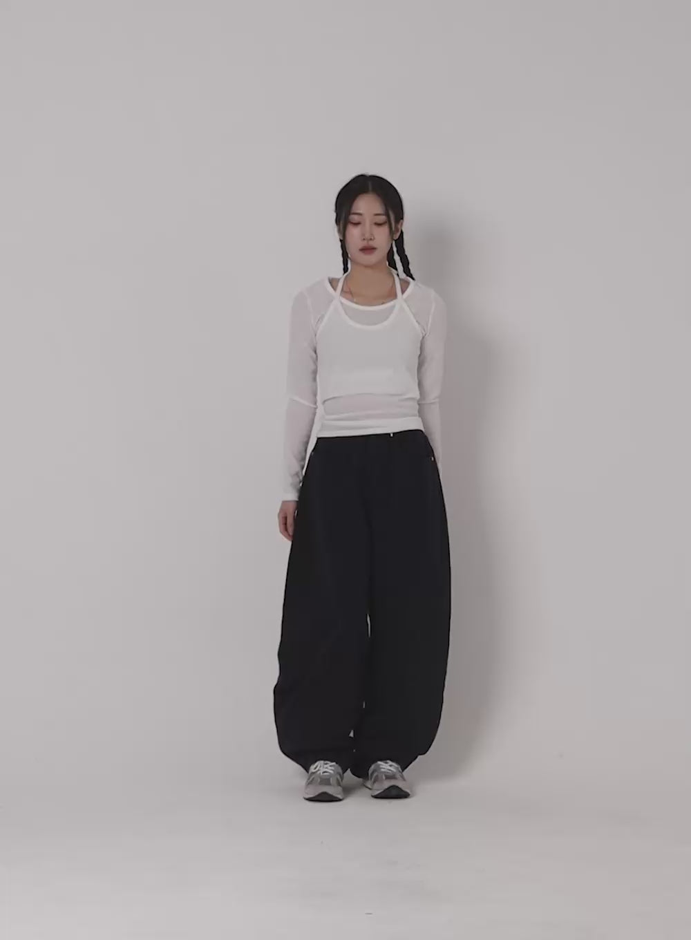 wide-fit-pintuck-nylon-trousers-cy512 / Dark gray