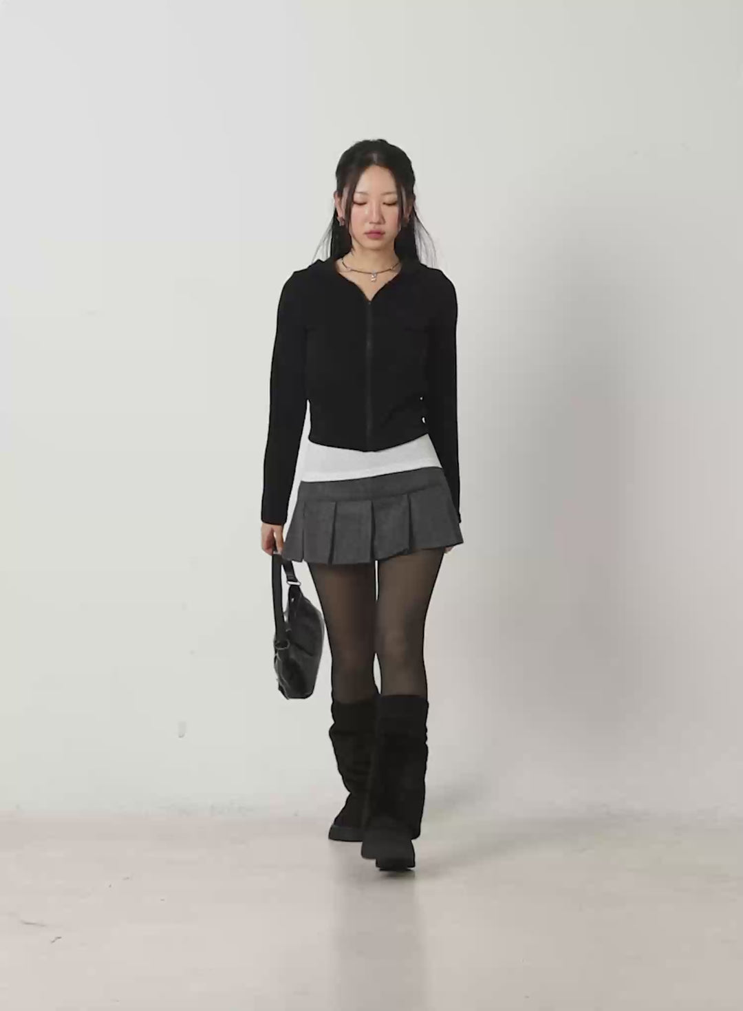 off-shoulder-zip-up-sweatshirt-cn528 / Black