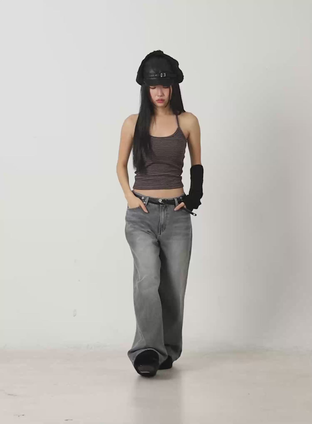 emery-cotton-strap-baggy-jeans-io409 / Dark gray