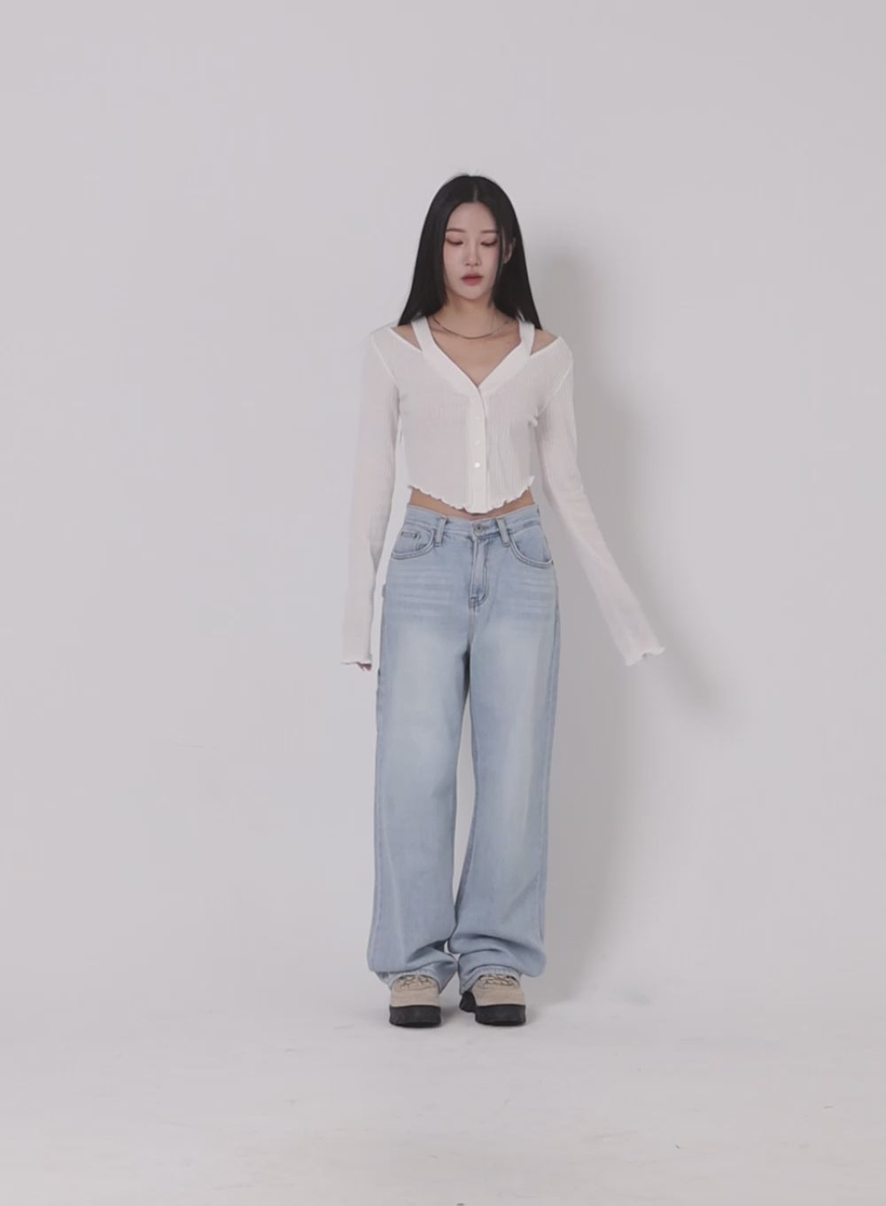 cut-out-buttoned-long-sleeve-crop-top-cj408 / White