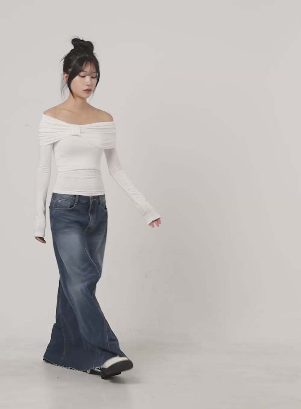 unbalanced-cut-out-long-sleeve-top-cd420 / White