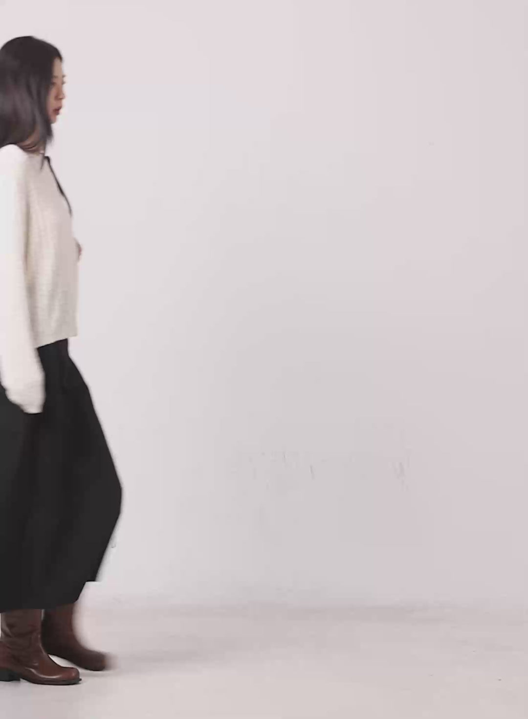 The puffer jacket, styled with ski goggles and chunky sneakers, effortlessly balances functionality and edge. Its clean lines and monochromatic palette create a Y3K look that’s perfect for winter activities or insta-worthy photos. This ensemble encapsulates the collection’s focus on merging comfort with cutting-edge picks.