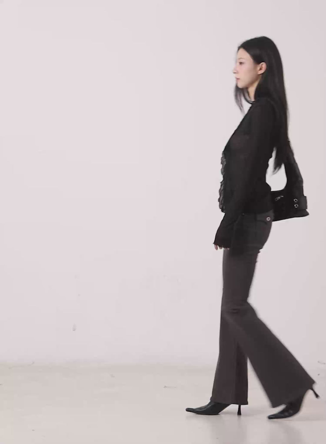 sheer-ruffle-long-sleeve-cardigan-cg522 / Black
