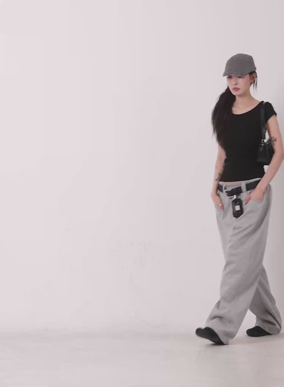 baggy-wide-leg-sweatpants-cu526 / Black