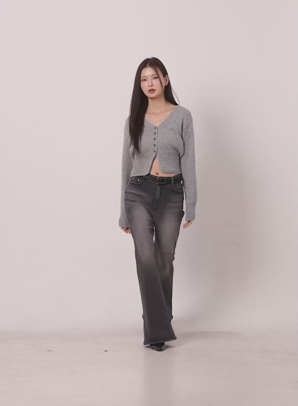 buttoned-v-neck-cropped-cardigan-ca502 / Gray