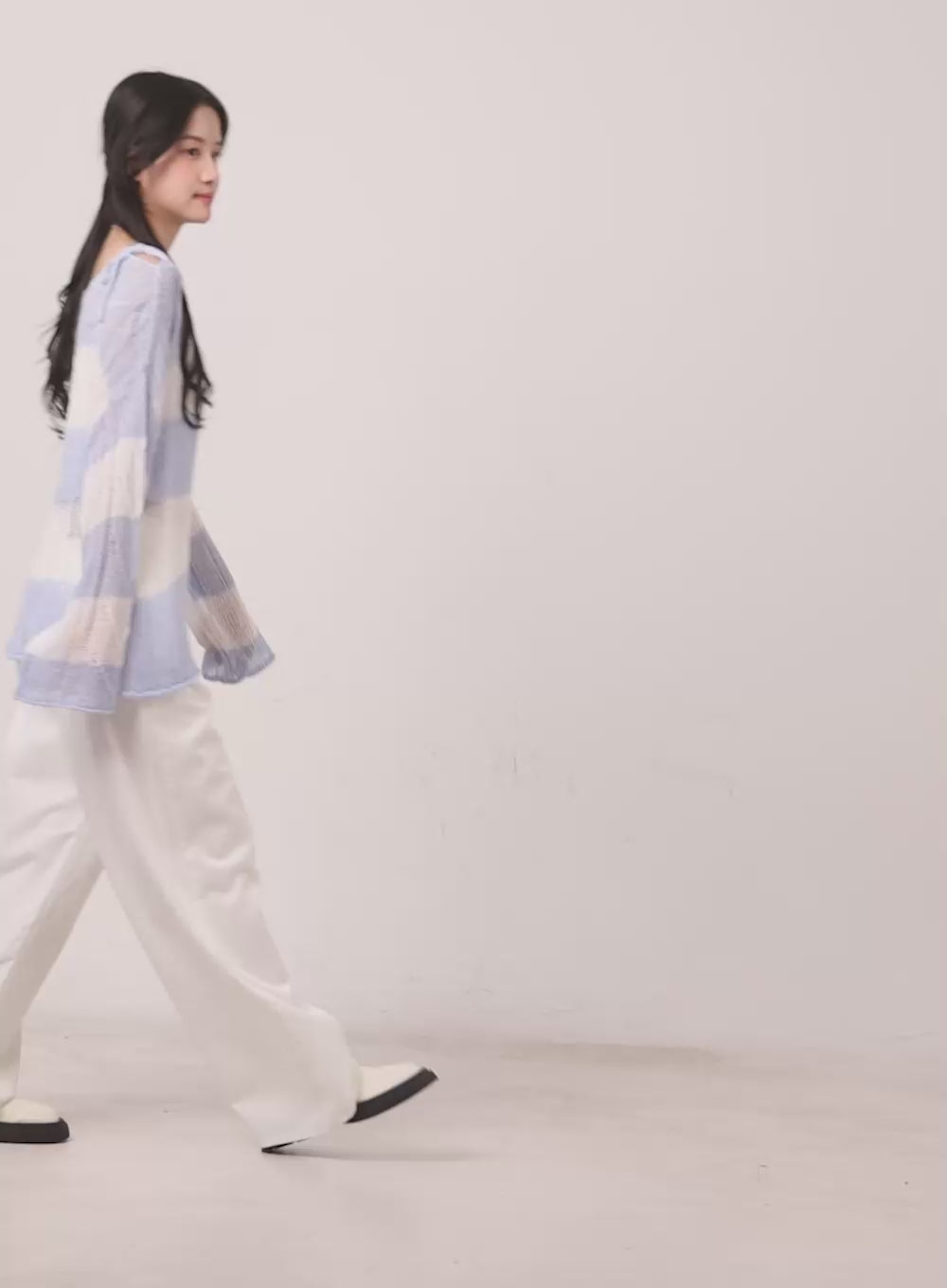 mesh-ribbon-stripe-sweater-cm527 / Light blue
