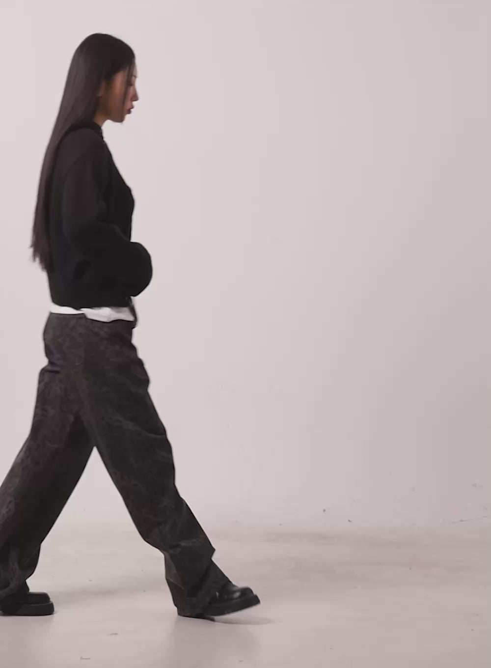 The puffer jacket, styled with ski goggles and chunky sneakers, effortlessly balances functionality and edge. Its clean lines and monochromatic palette create a Y3K look that’s perfect for winter activities or insta-worthy photos. This ensemble encapsulates the collection’s focus on merging comfort with cutting-edge picks.