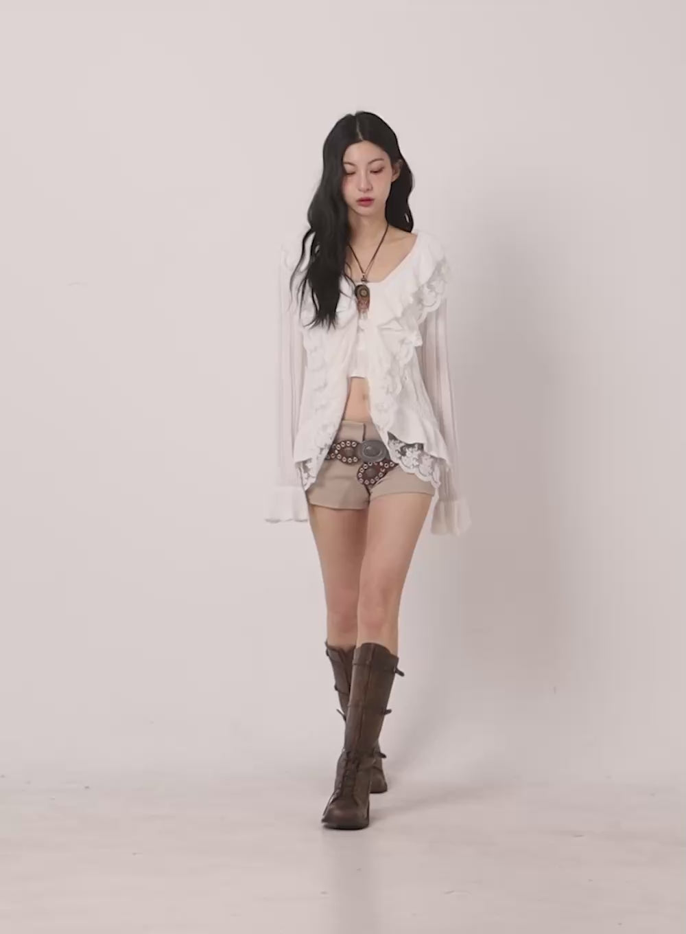 frill-lace-v-neck-knit-cardigan-cf513 / White