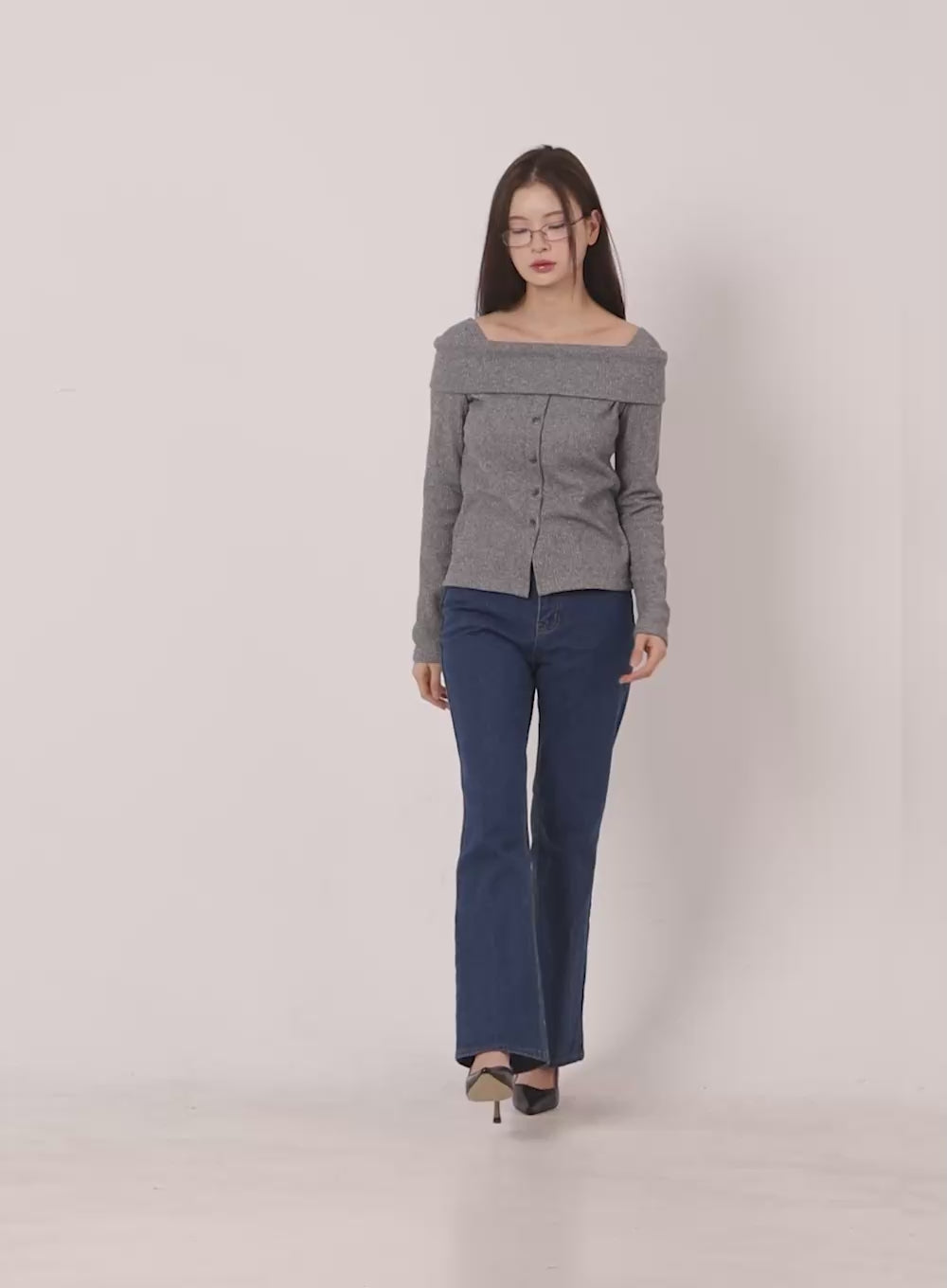cozy-buttoned-ribbed-sweater-cf504 / Gray