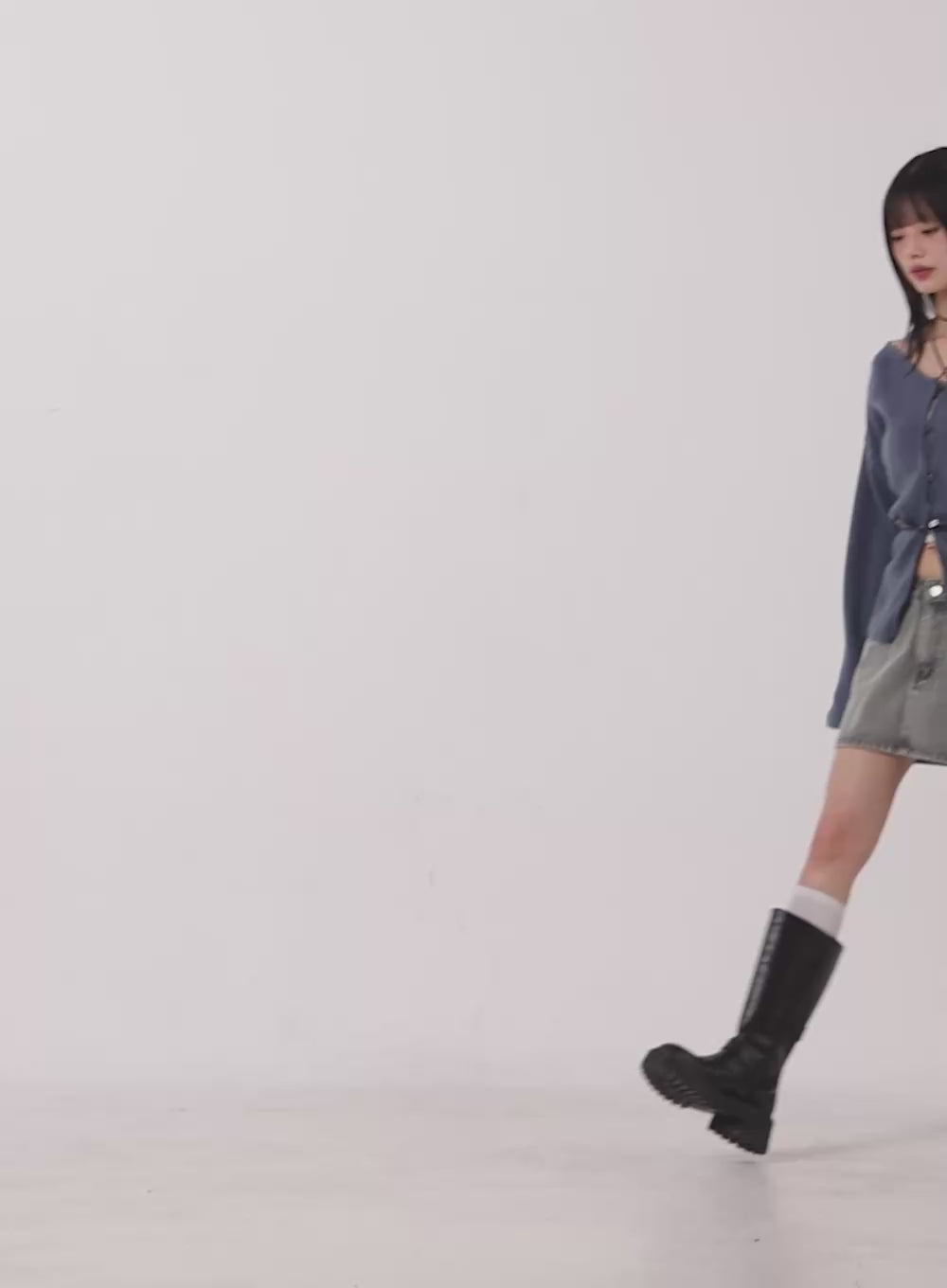 off-shoulder-loose-fit-buttoned-cardigan-cd426 / Blue