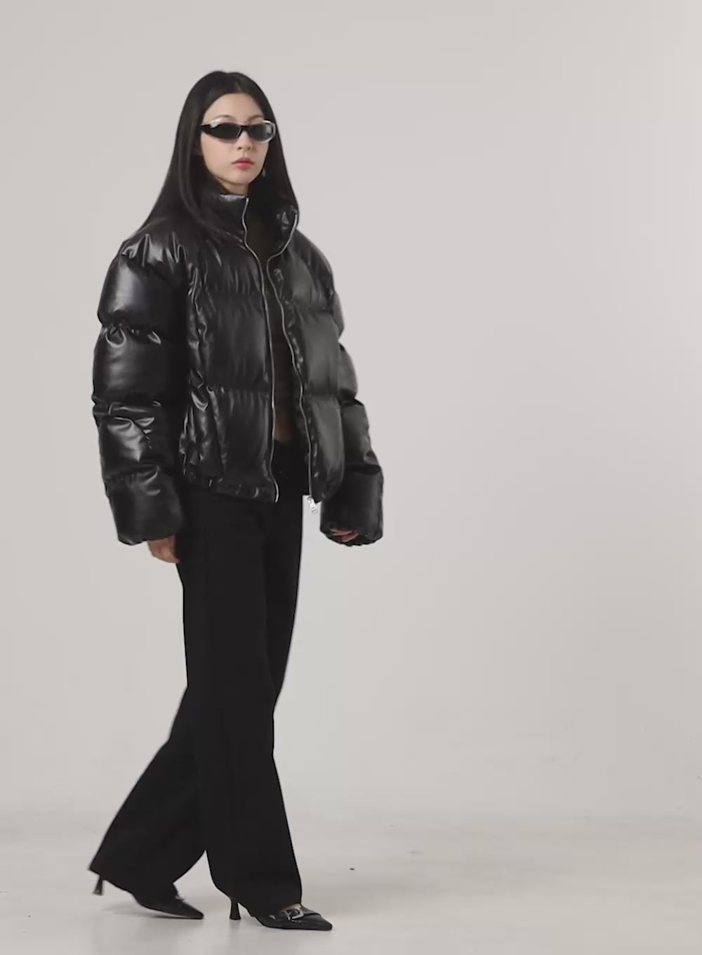 The puffer jacket, styled with ski goggles and chunky sneakers, effortlessly balances functionality and edge. Its clean lines and monochromatic palette create a Y3K look that’s perfect for winter activities or insta-worthy photos. This ensemble encapsulates the collection’s focus on merging comfort with cutting-edge picks.