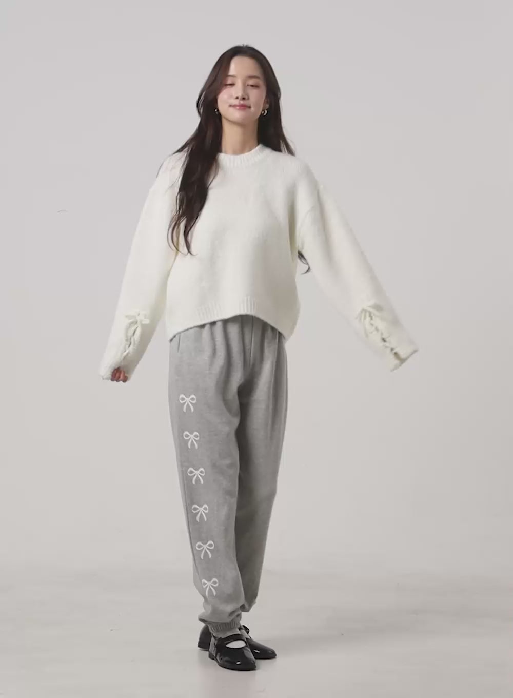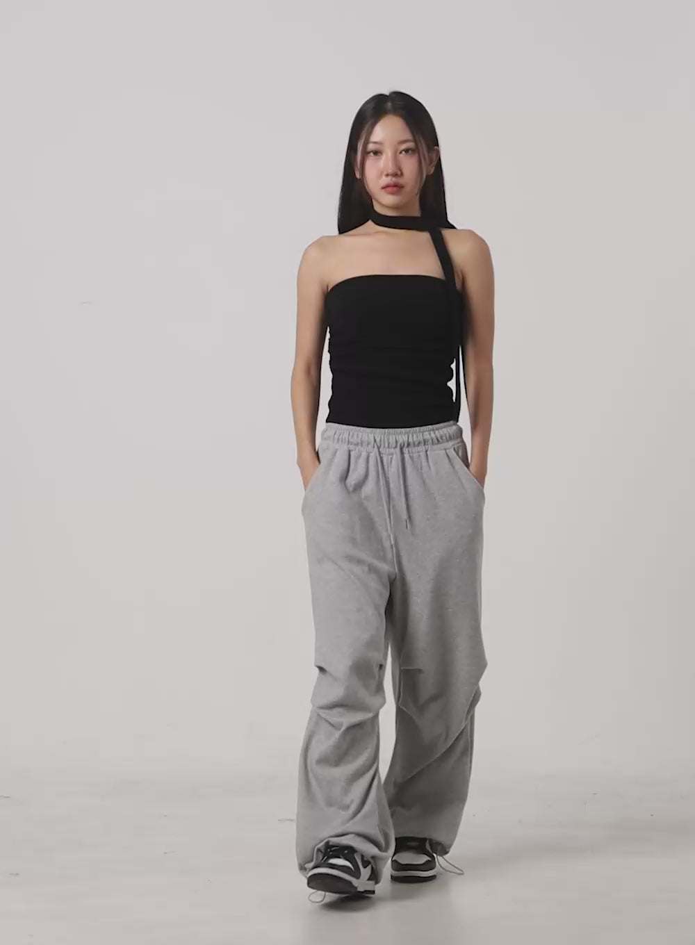 string-pintuck-wide-sweatpants-co419 / Light gray