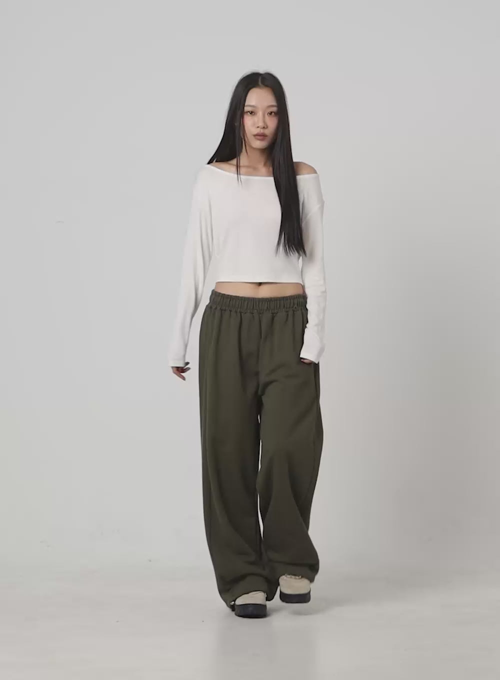 classic-cotton-wide-fit-sweatpants-is427 / Dark green