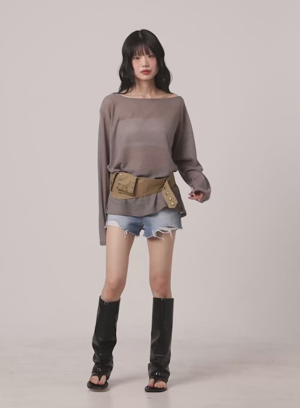 hollow-out-side-ribbon-knit-sweater-ou419 / Beige