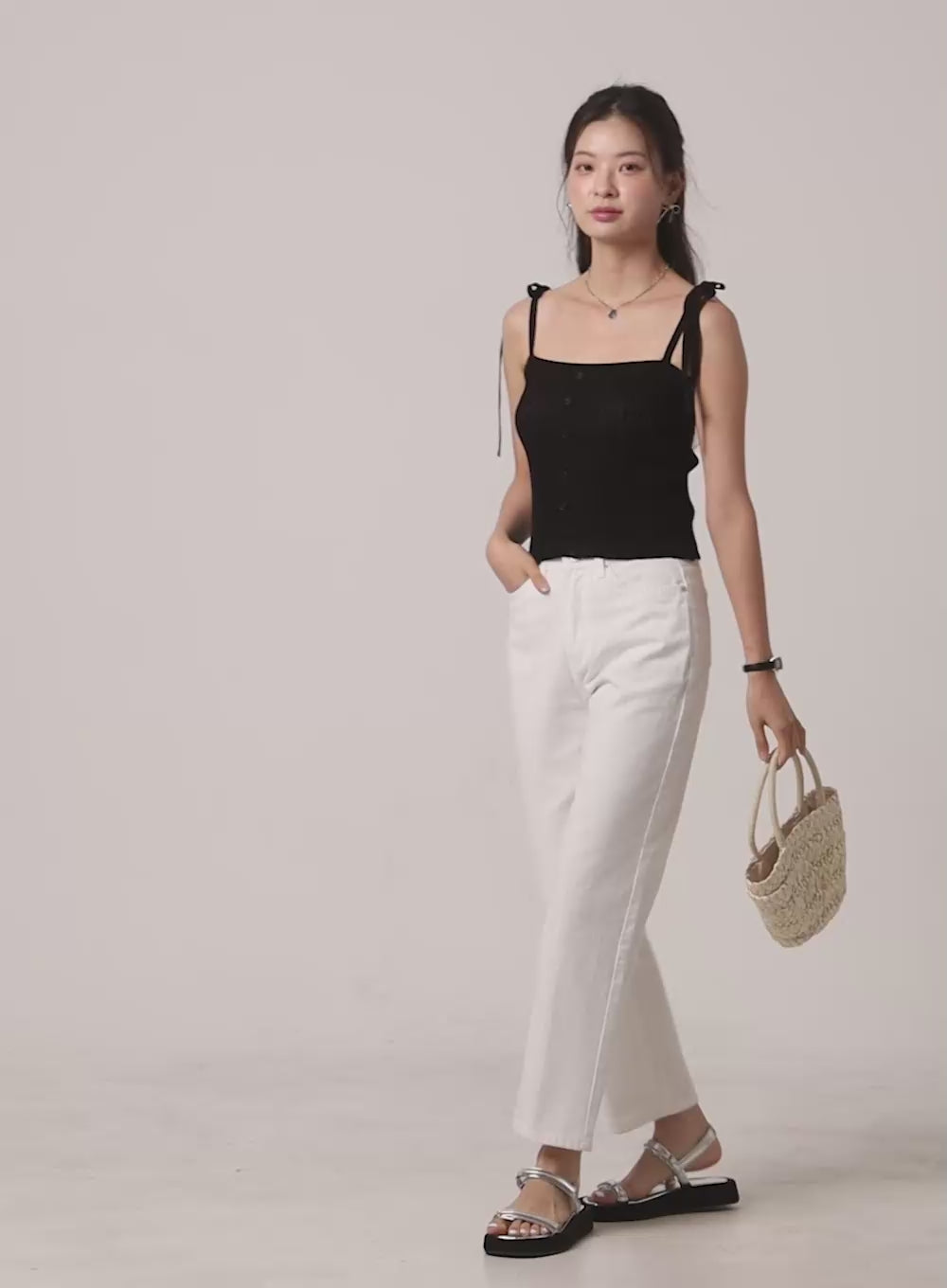 summer-v-neck-ribbed-knit-top-ou411 / Light beige