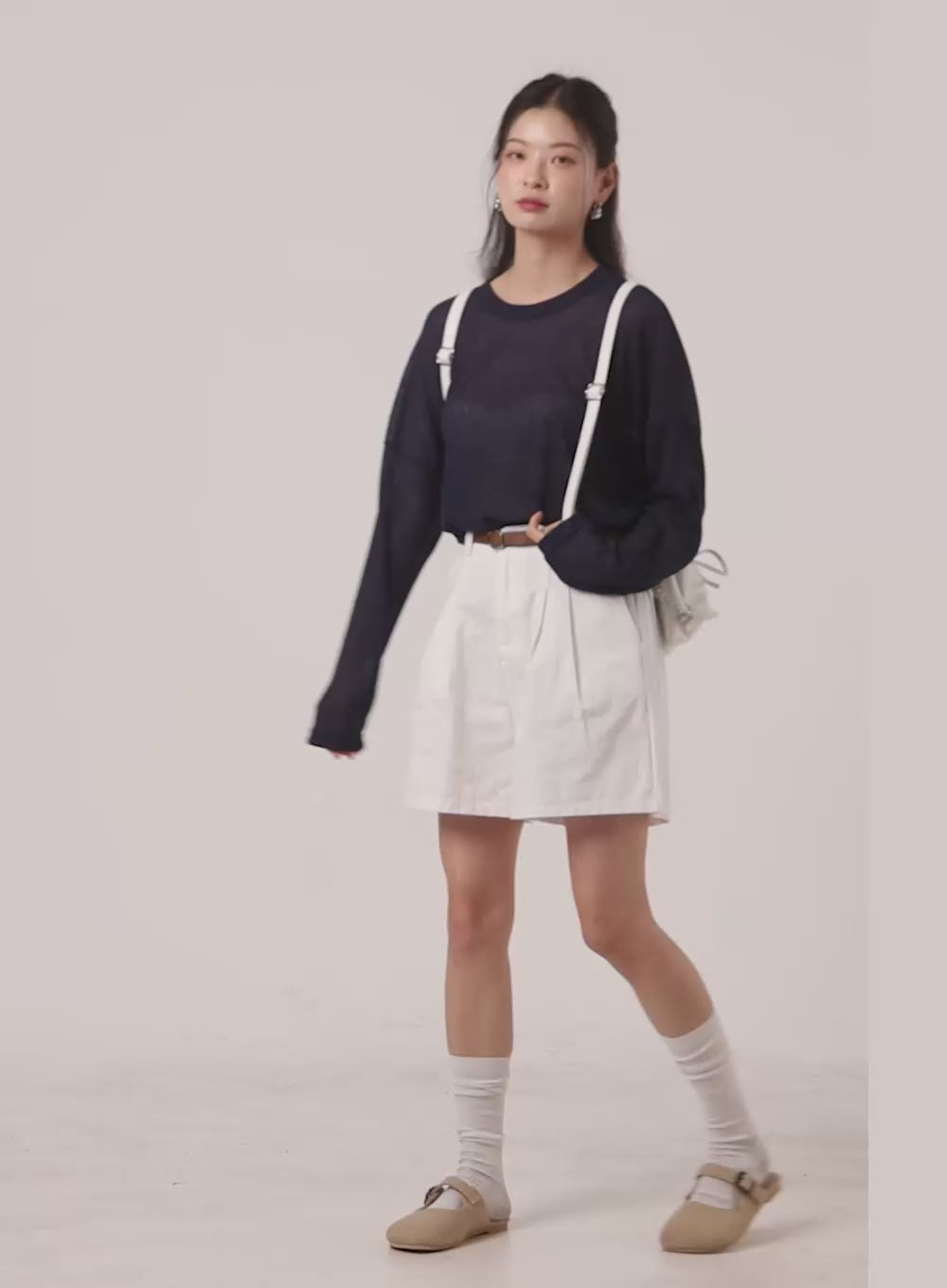 solid-sheer-long-sleeve-top-ou419 / Dark blue