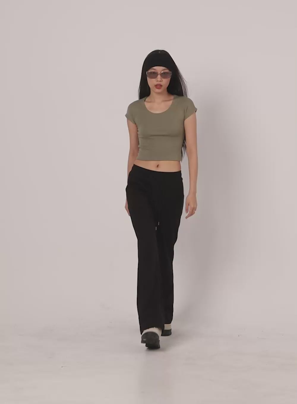 v-neck-short-sleeve-knit-crop-top-oy413 / Black