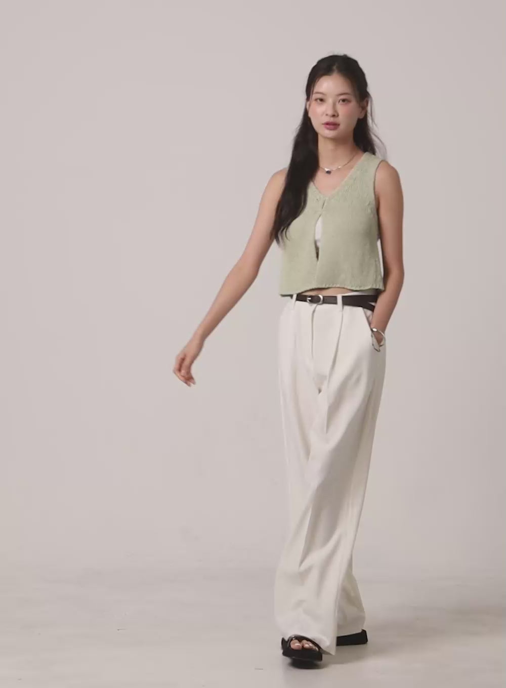 v-neck-strap-buttoned-cardigan-ou407 / Light beige