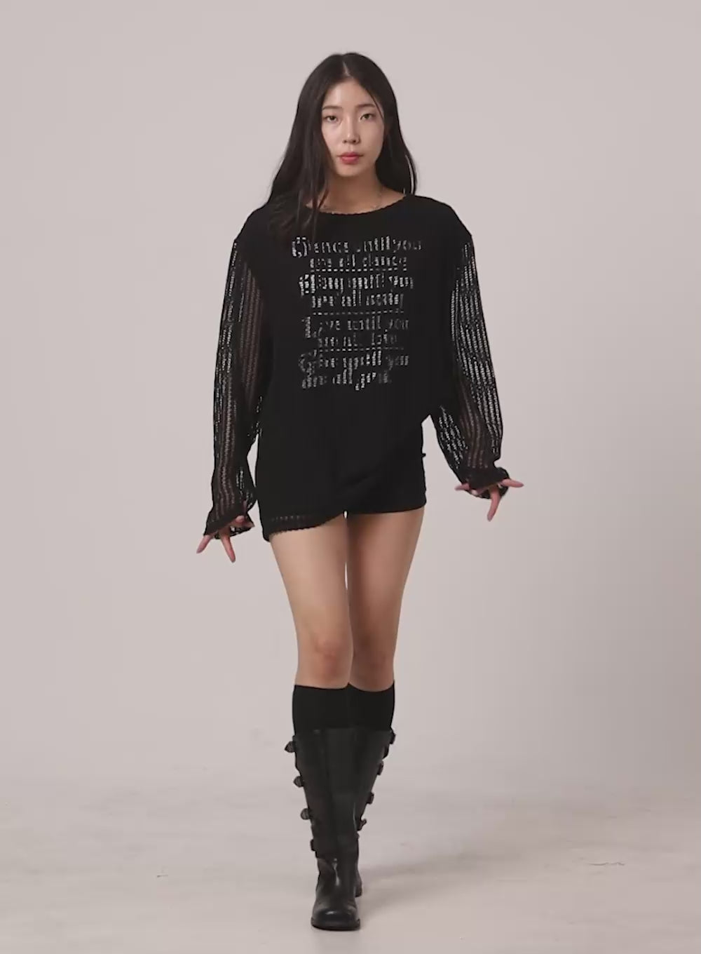 Sheer Graphic One-Shoulder Summer Sweater CU404
