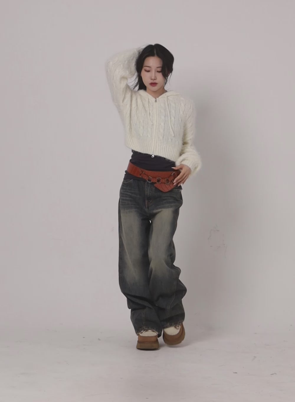 cable-knit-zippered-hooded-cardigan-cf416 / Light beige