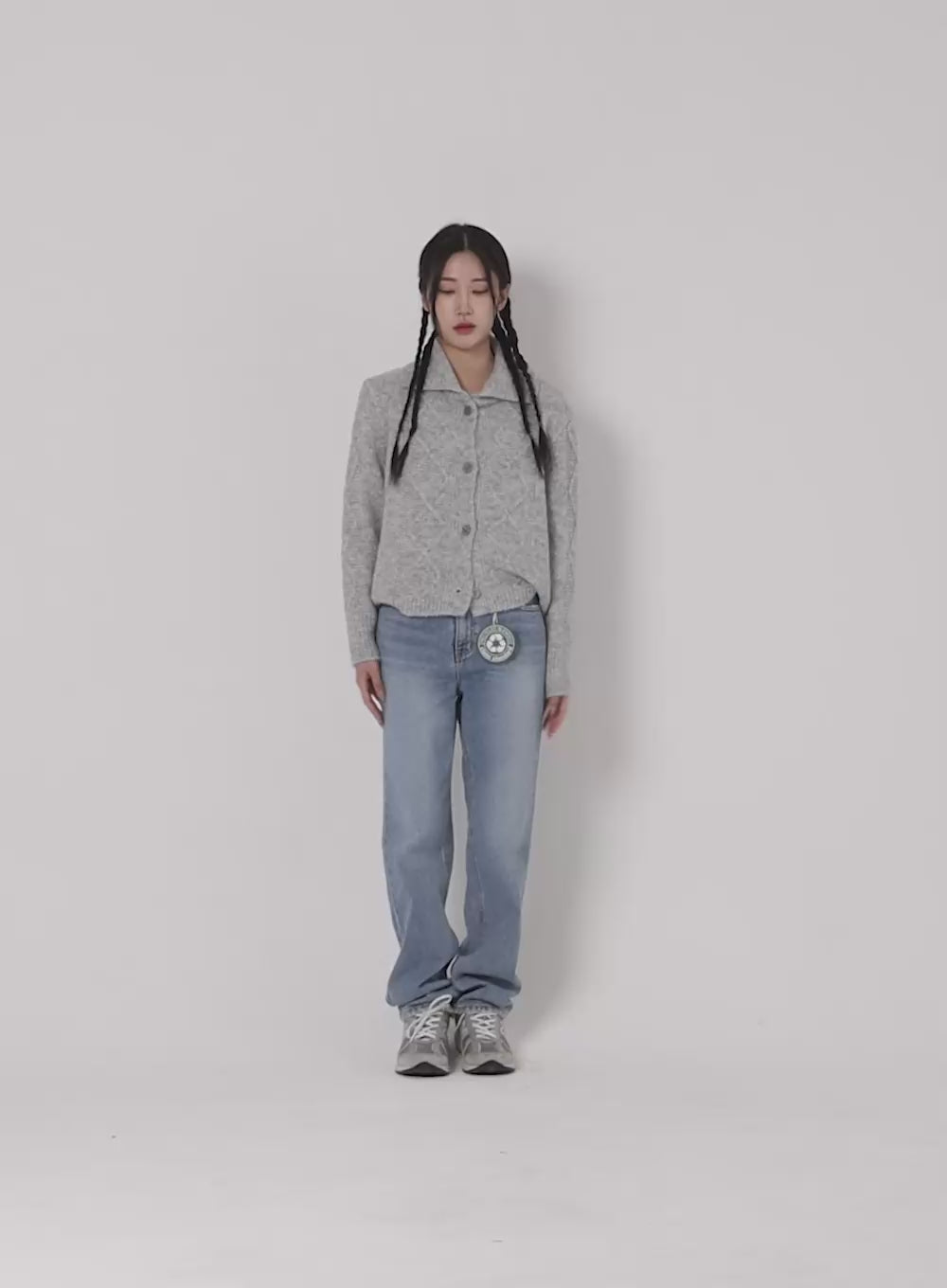 recycled-polyester-collared-cable-knit-cardigan-cd314 / Light gray