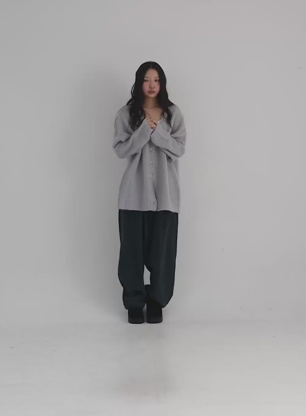 v-neck-loose-fit-knit-cardigan-cn303 / Light gray