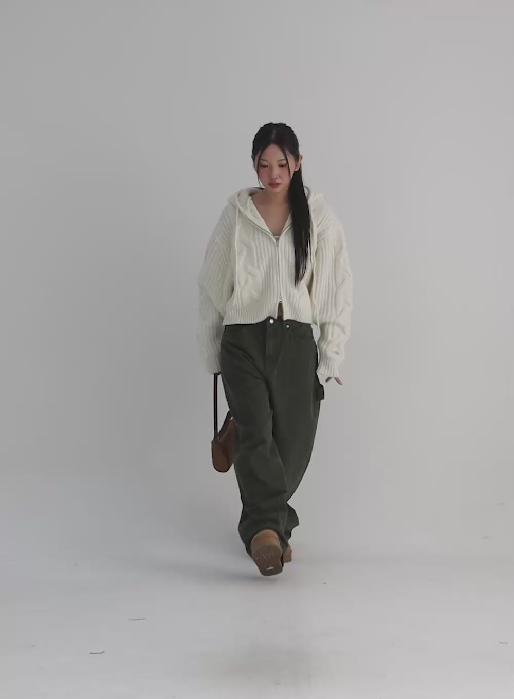 cable-knit-hooded-zip-up-sweater-co306 / Light beige