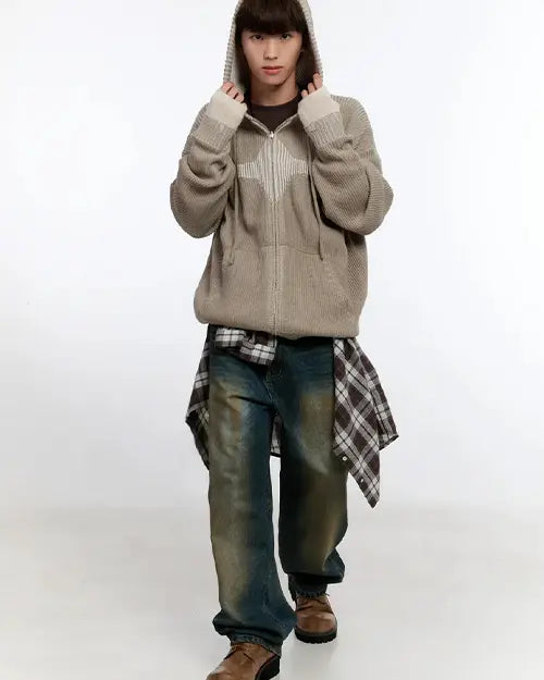 NEWMen's Striped Textured Double Zip-Up Hoodie IO506