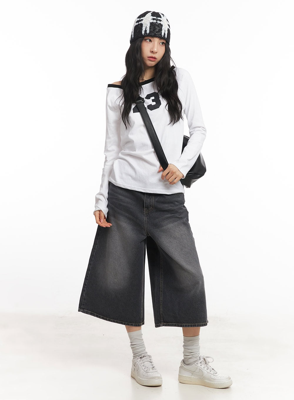 23 Graphic Off-Shoulder Long-Sleeve Top CA504