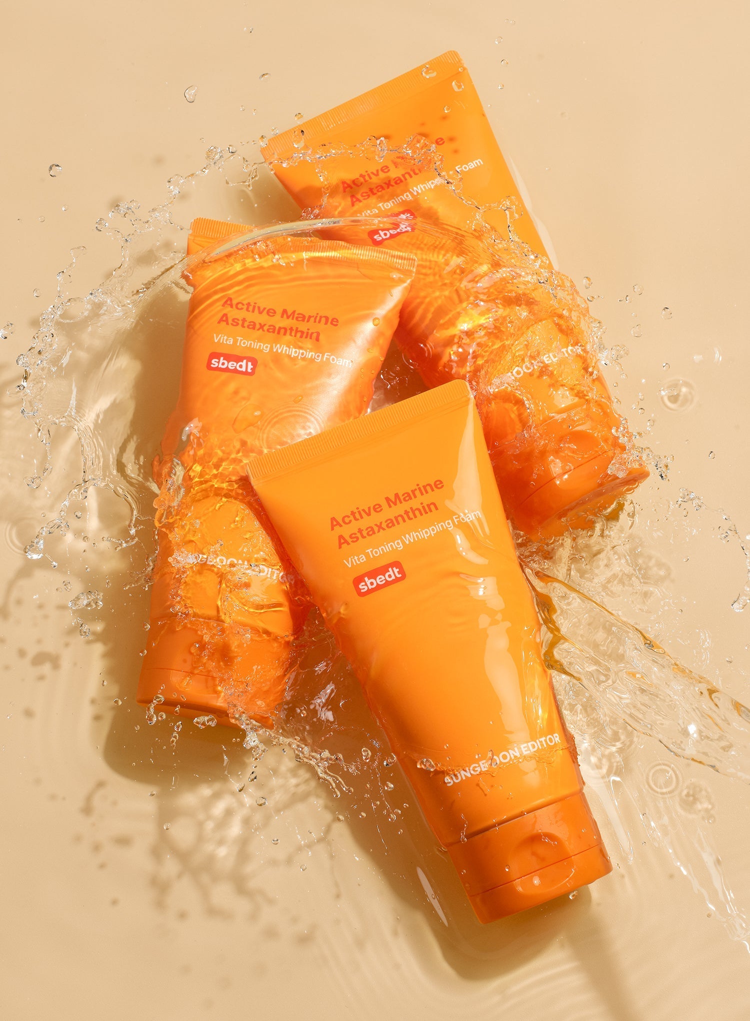 A marine‑derived astaxanthin‑rich cleansing foam that brightens and removes impurities