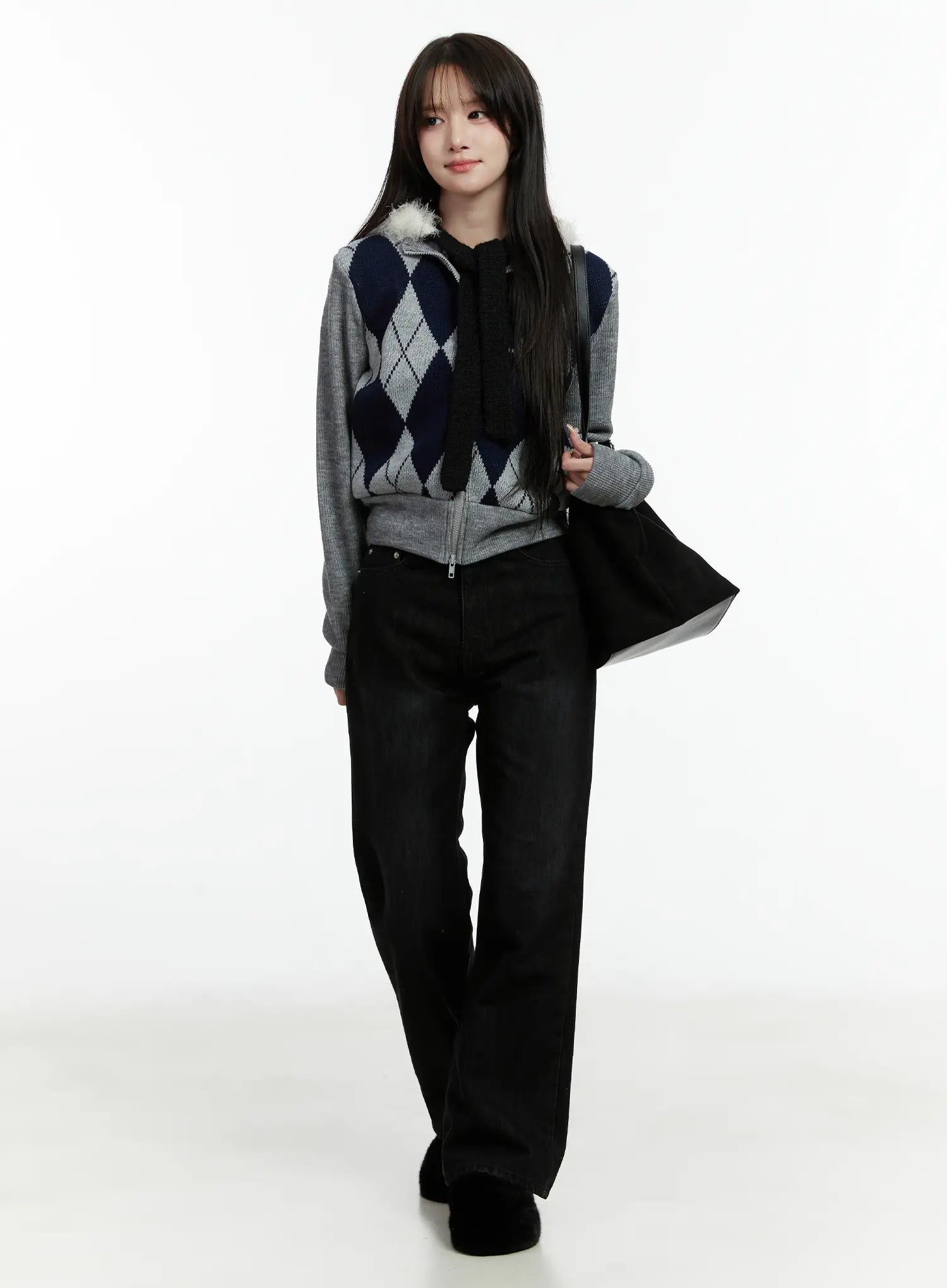 Argyle Pattern Knit Zip-Up Sweater CD523