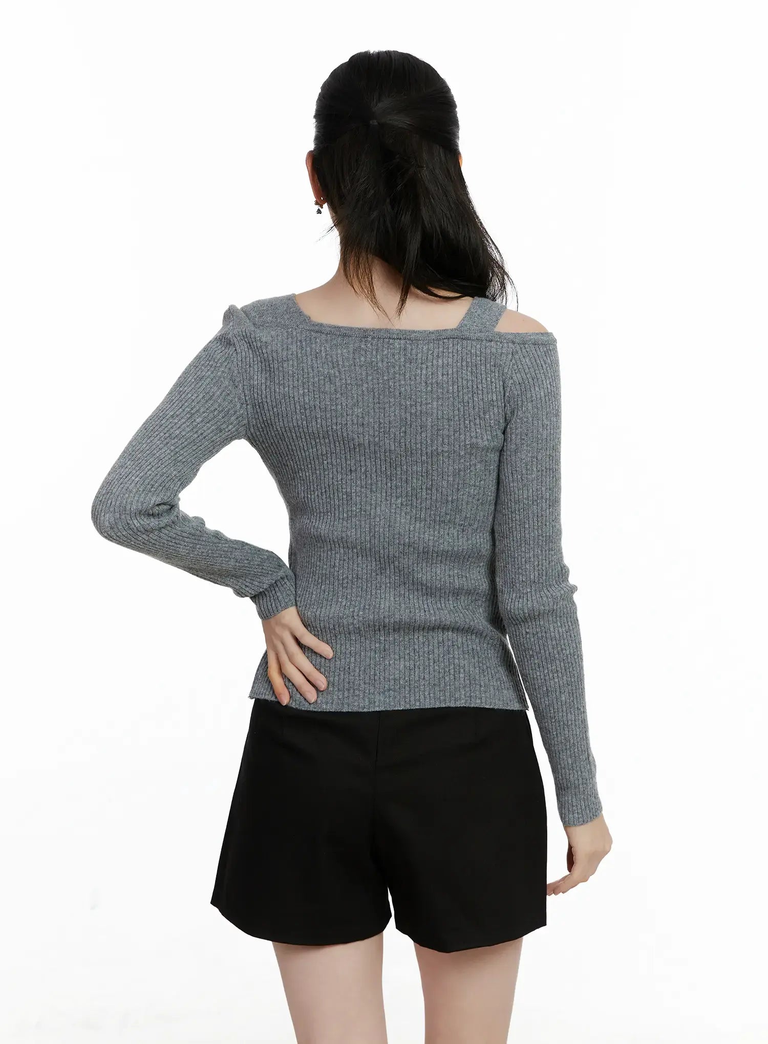 Asymmetric Button Long Sleeve Knit Top F502