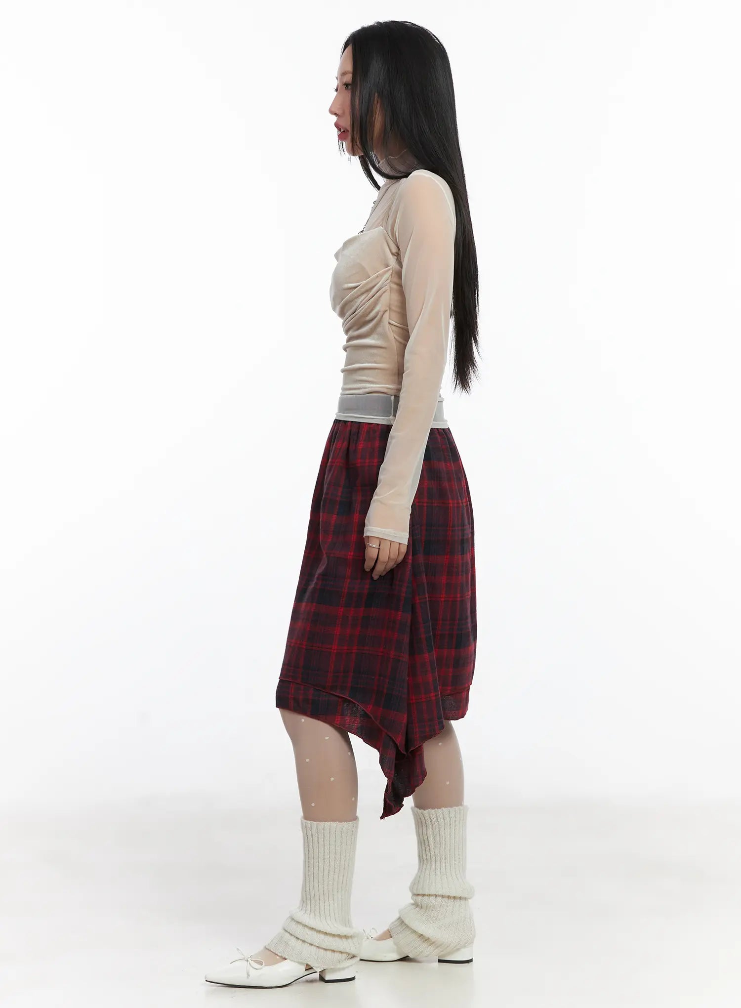 Asymmetric Checkered Midi Skirt CD530