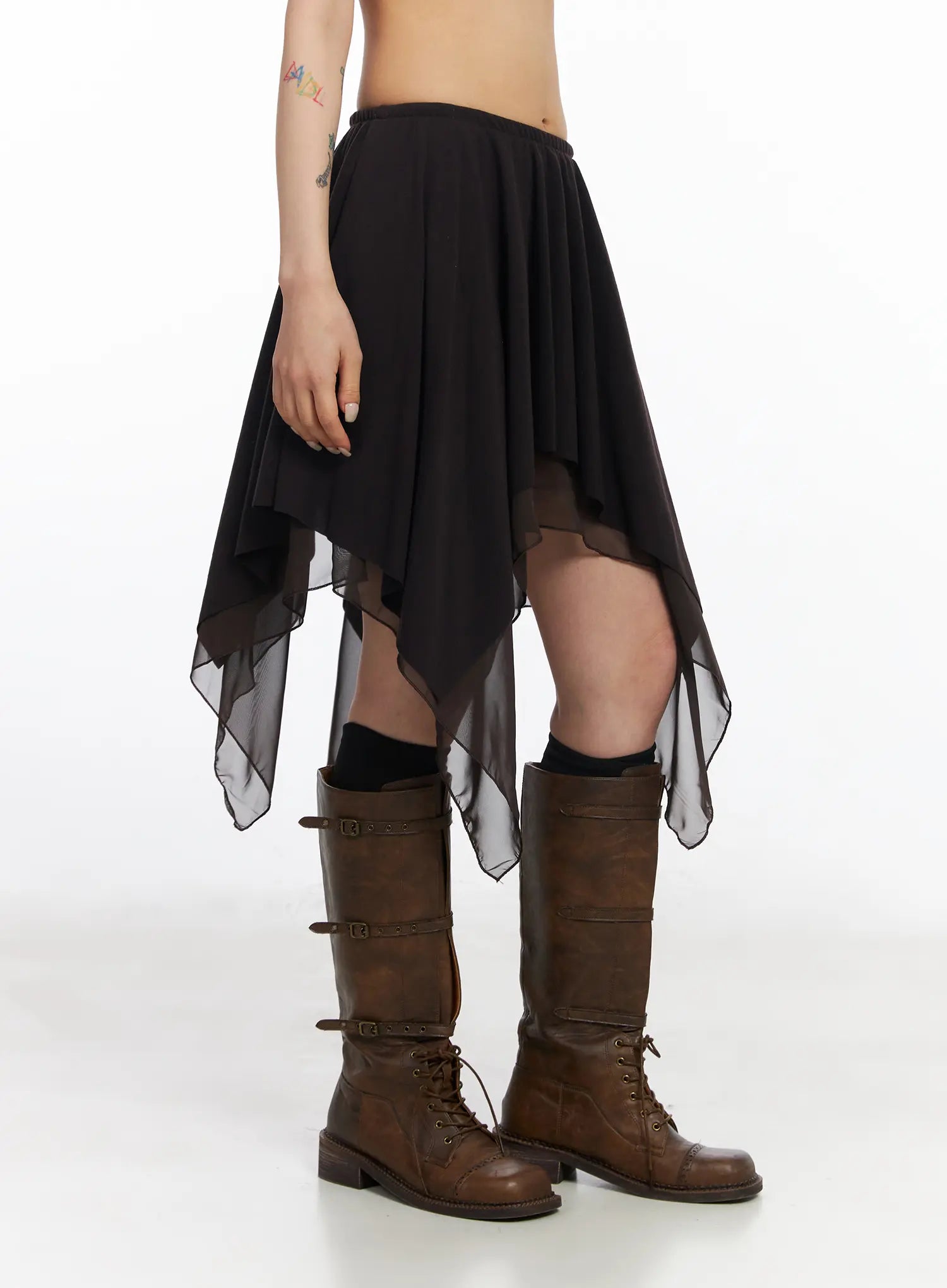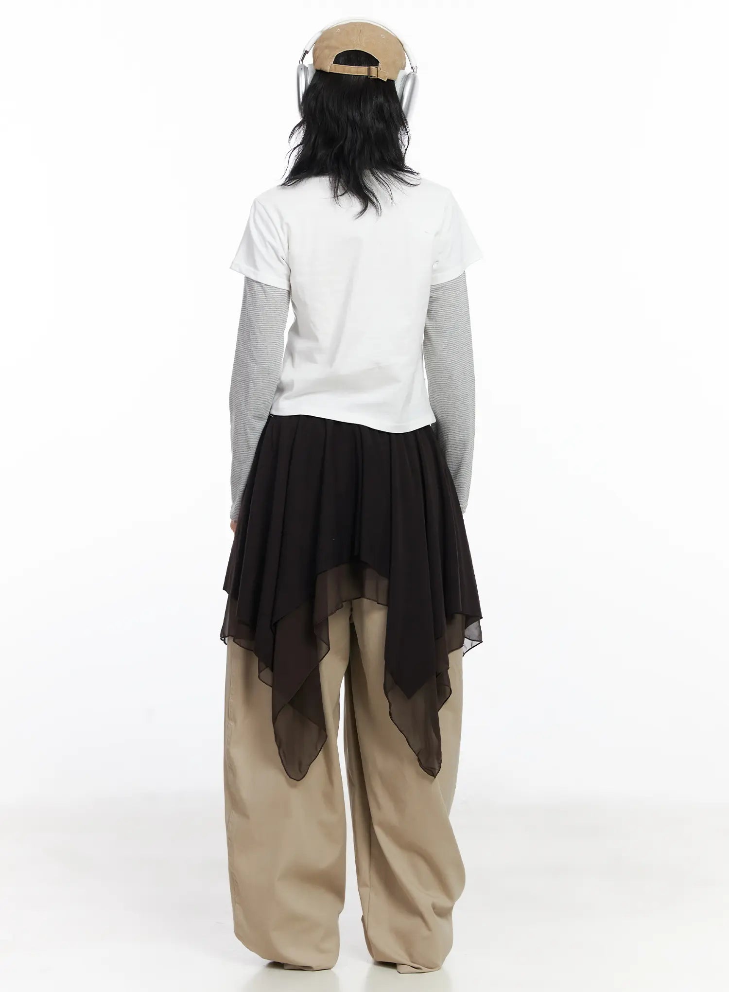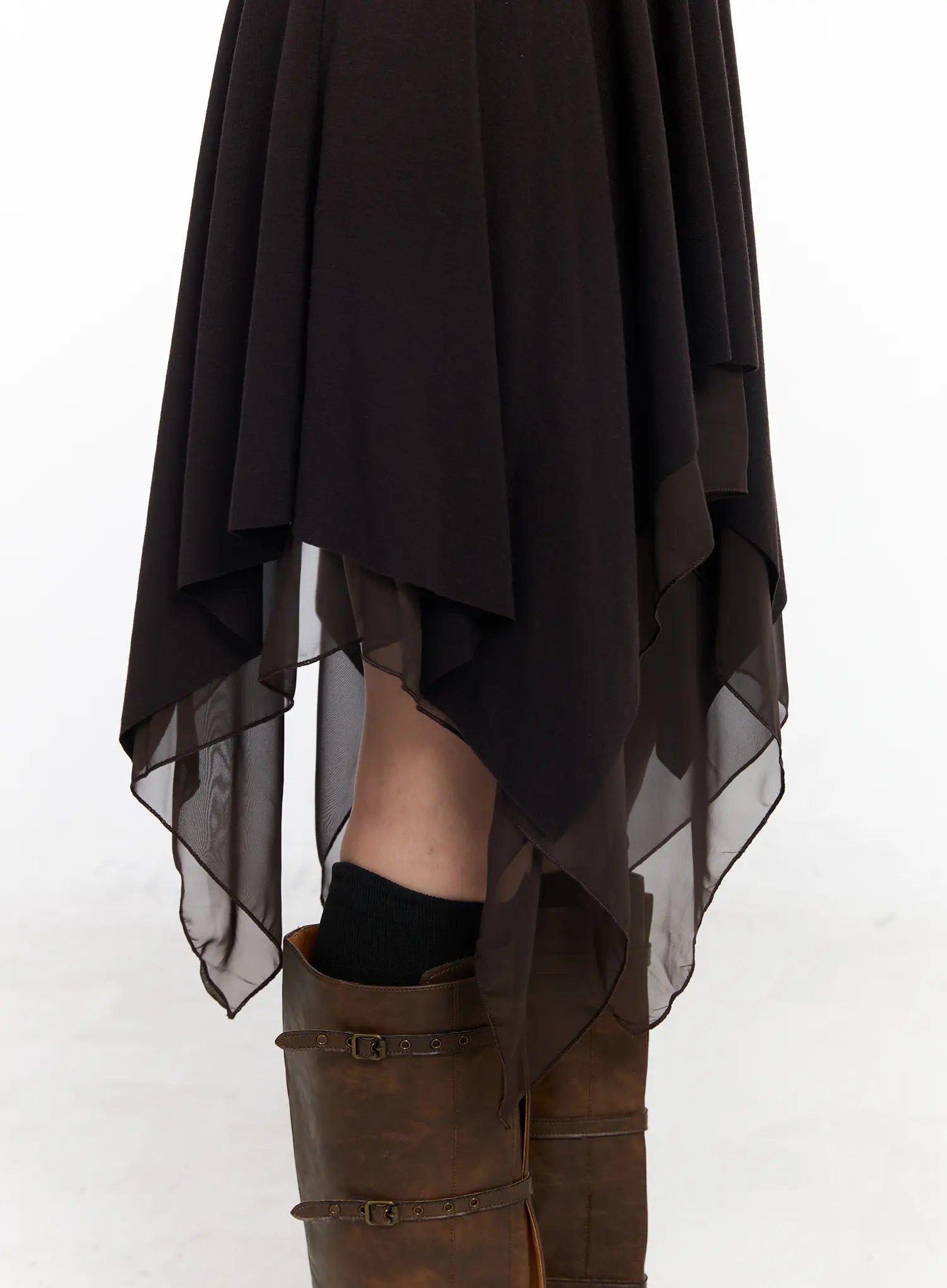 Asymmetric Flare Chiffon Midi Skirt CJ523