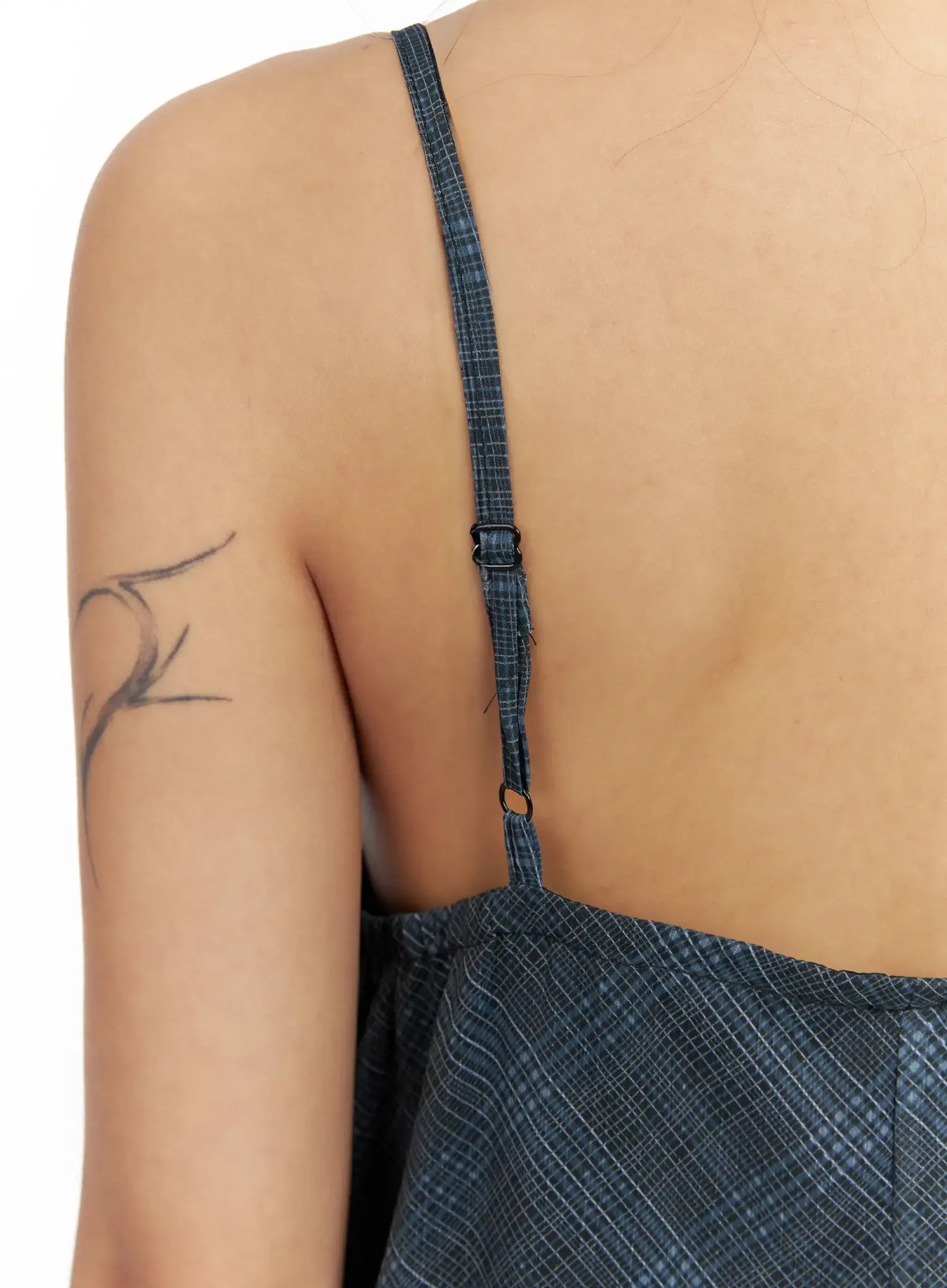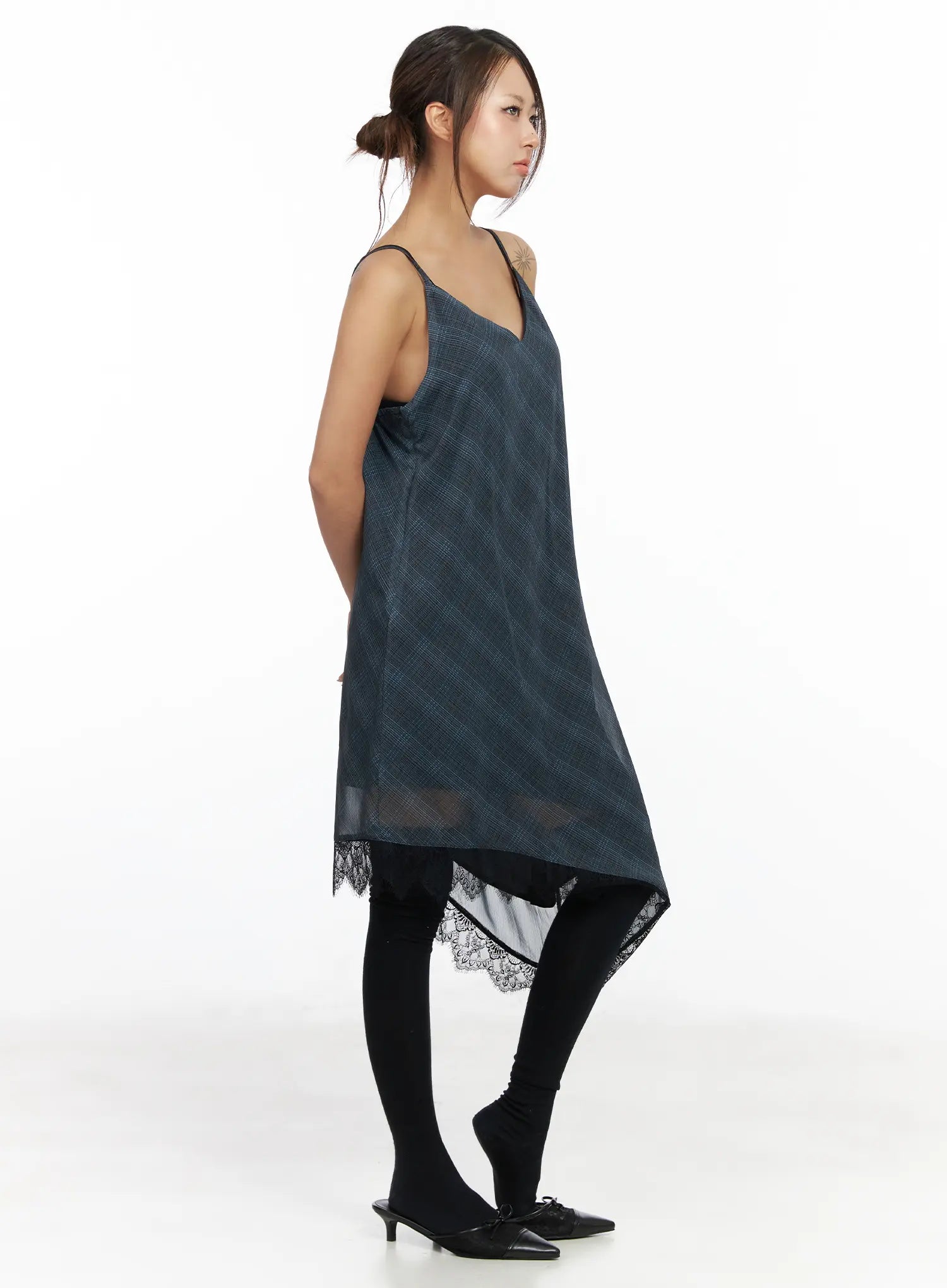 Asymmetric Lace-Trim Plaid Midi Dress CF511