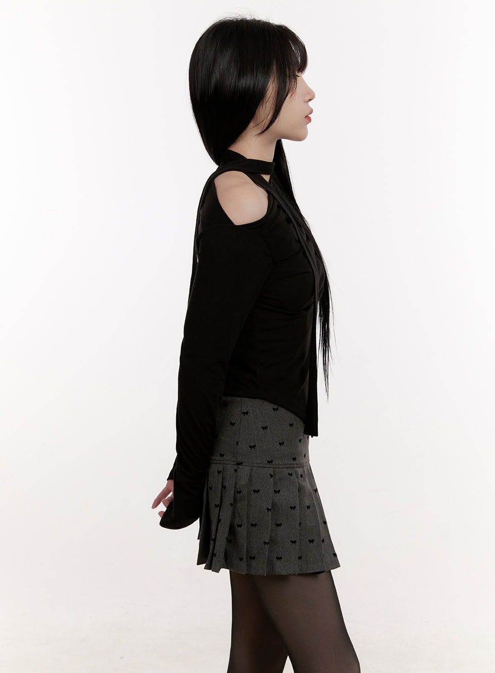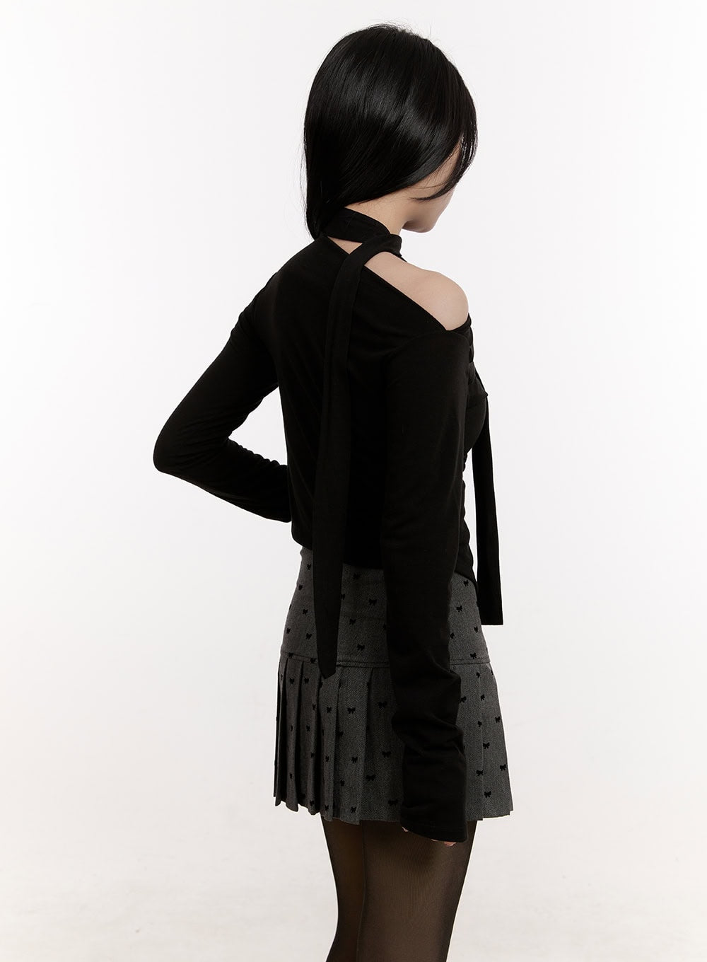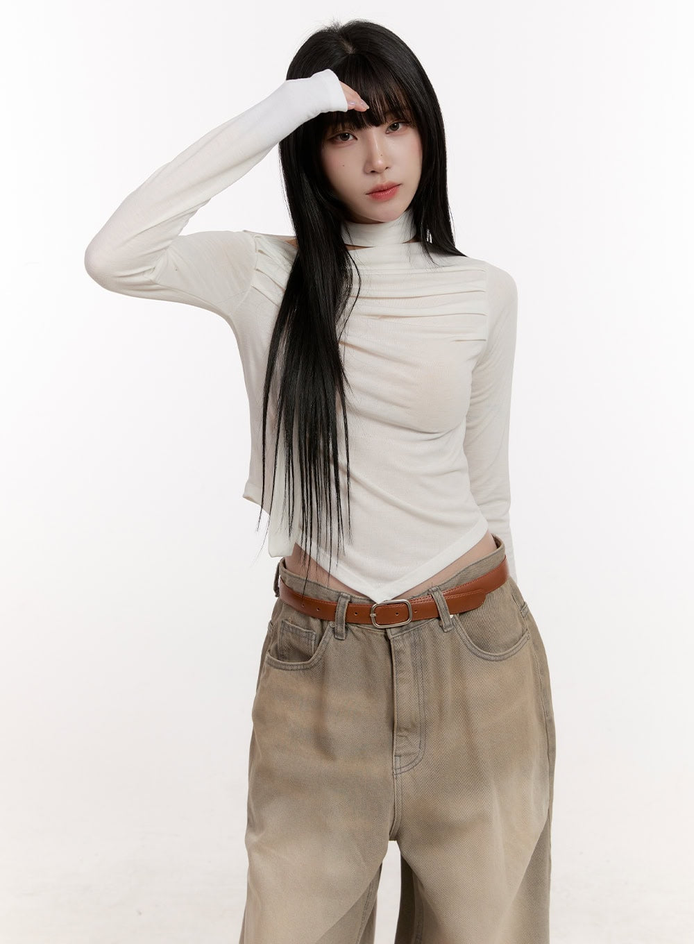 Asymmetric Off-Shoulder Shirred Crop Top CJ531