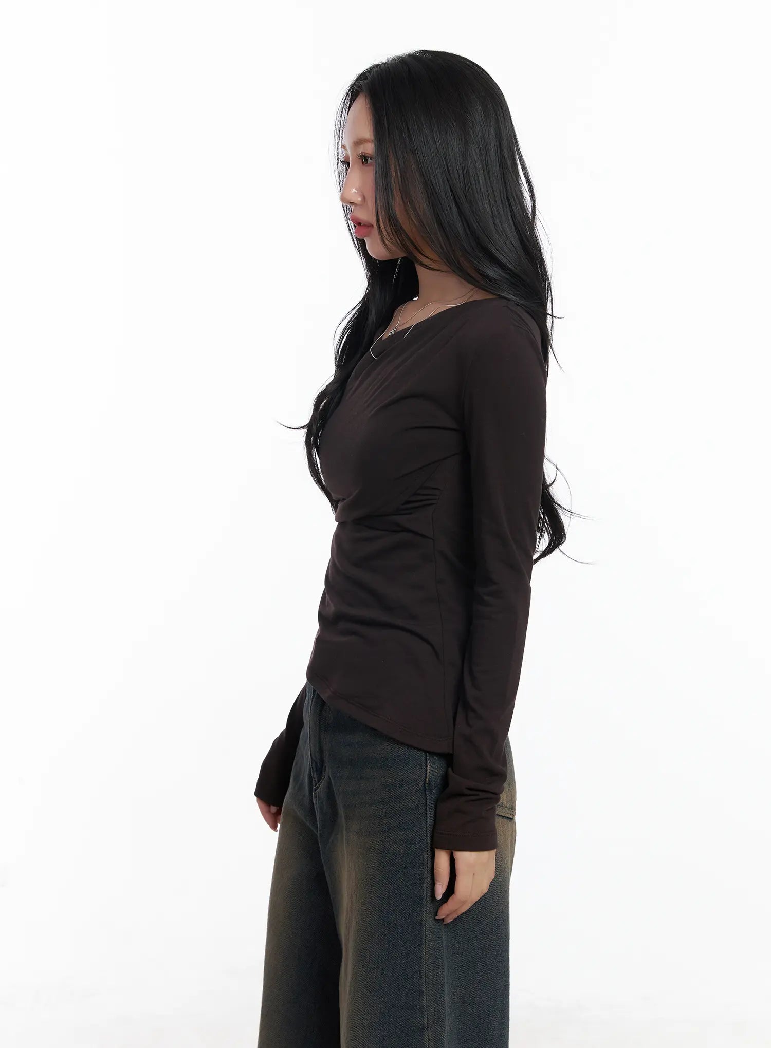 Asymmetric Ruched Long Sleeve Top CJ514