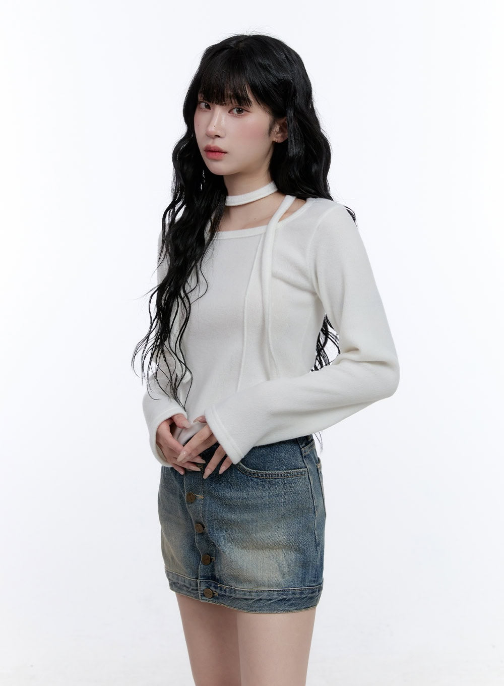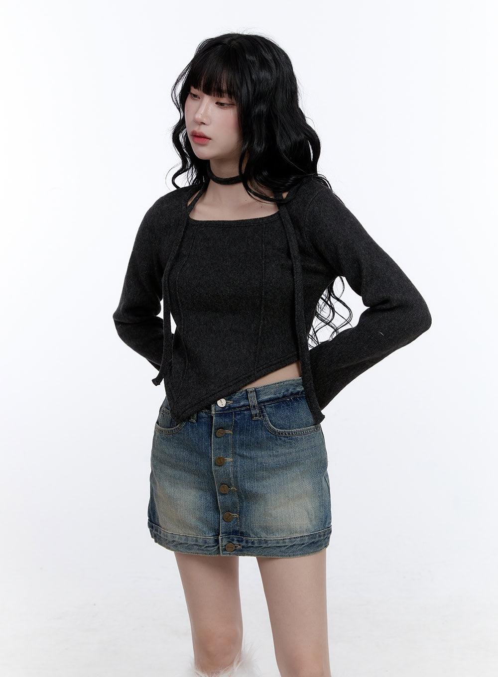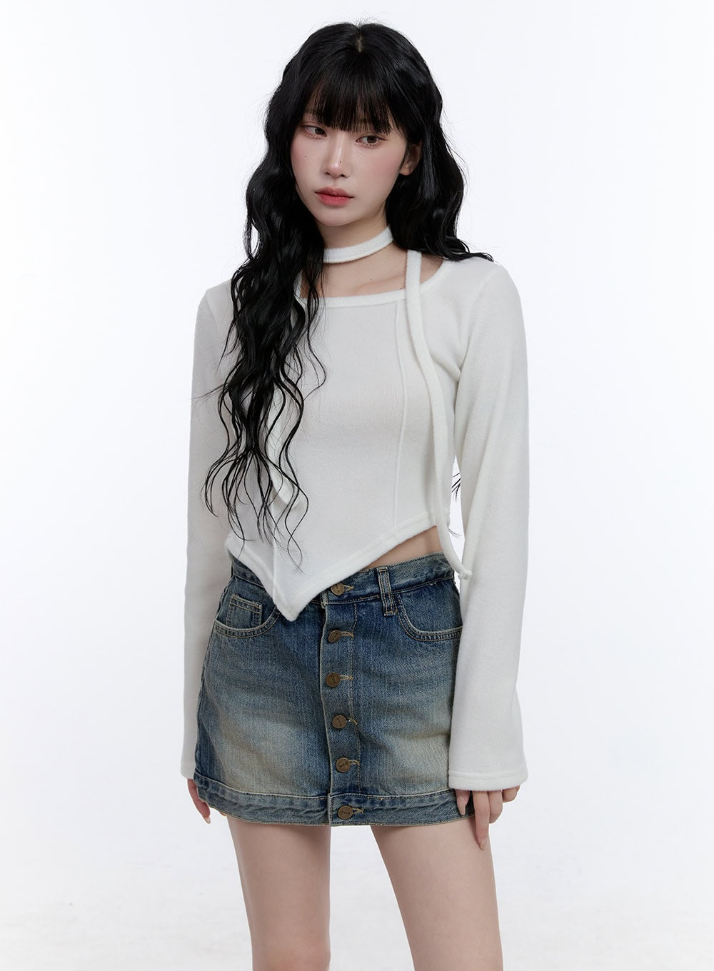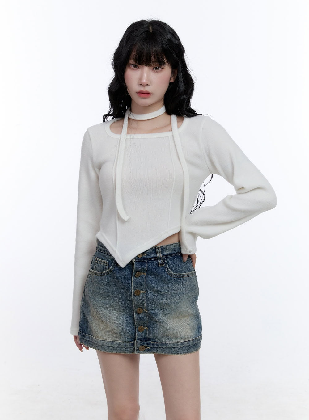 Asymmetric Scarf Detail Crop Top CD419