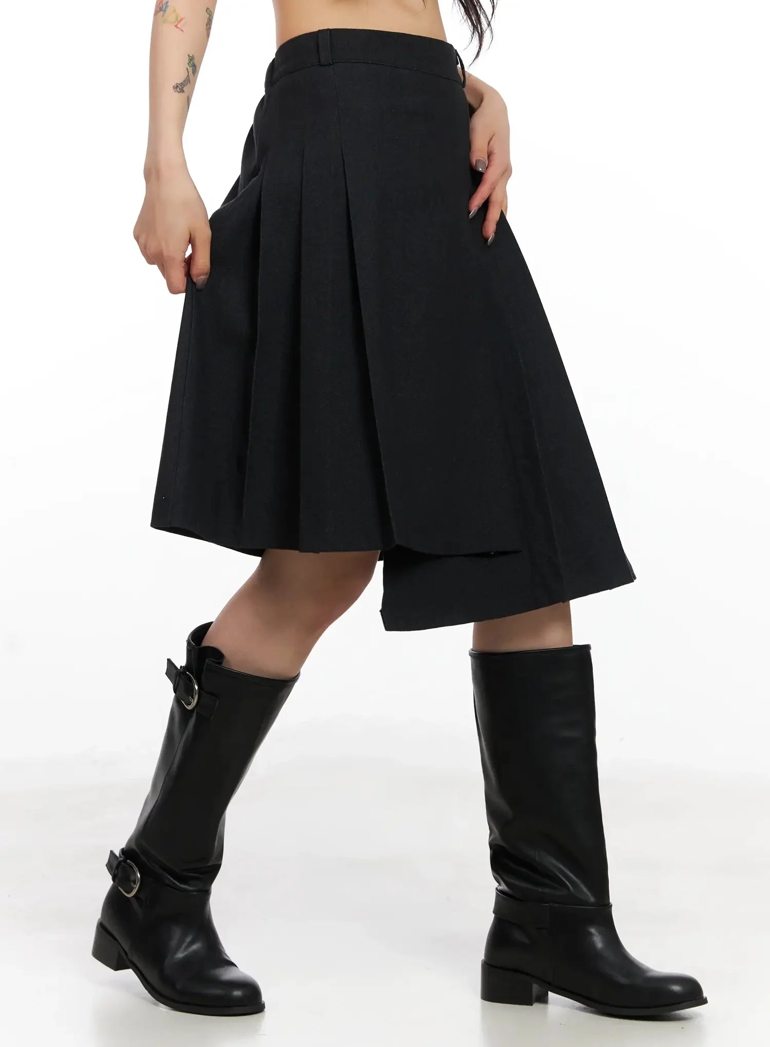 Asymmetrical Pleated Midi Skirt IN528