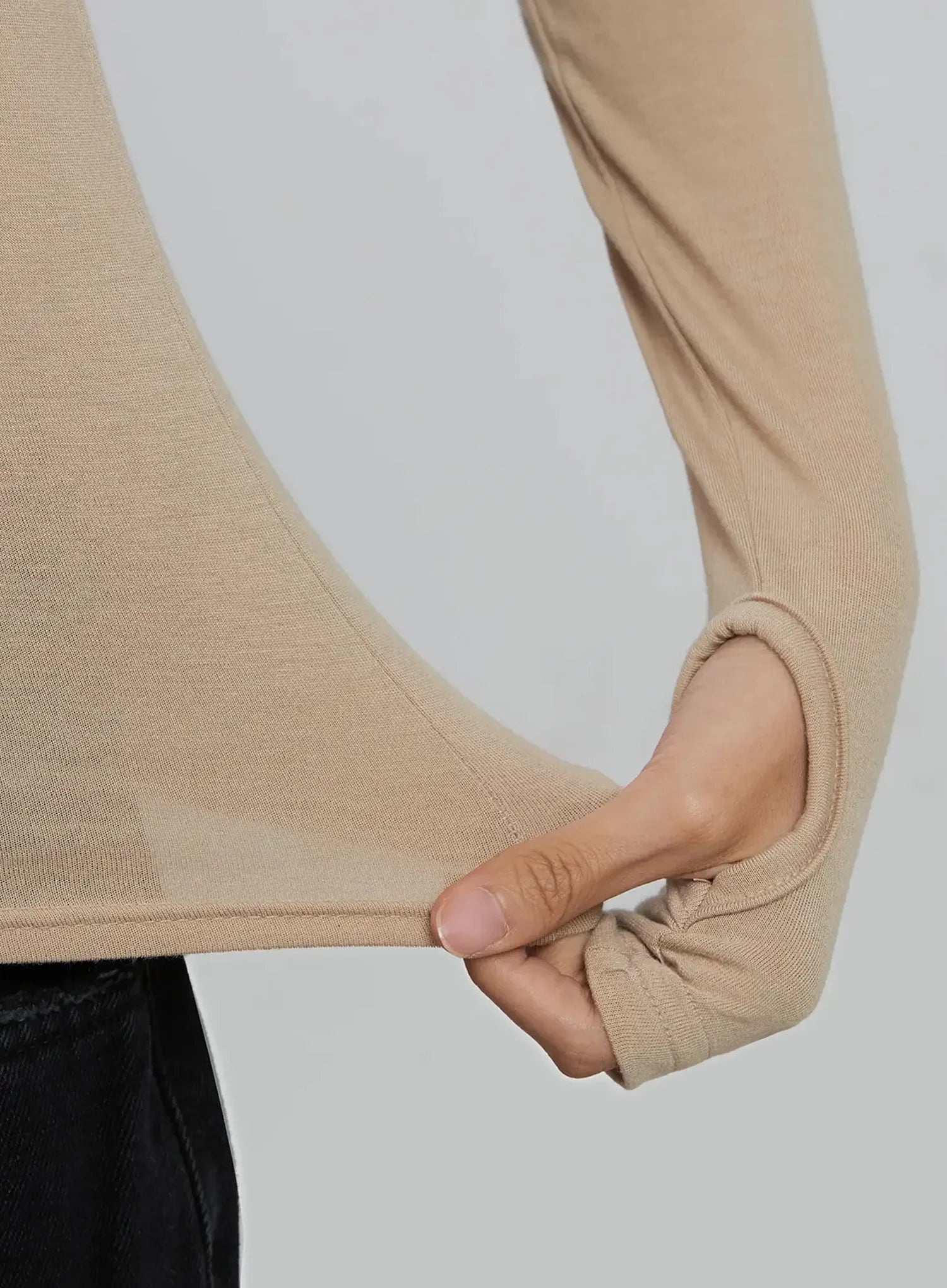 Model is wearing size S/M and the color Beige.