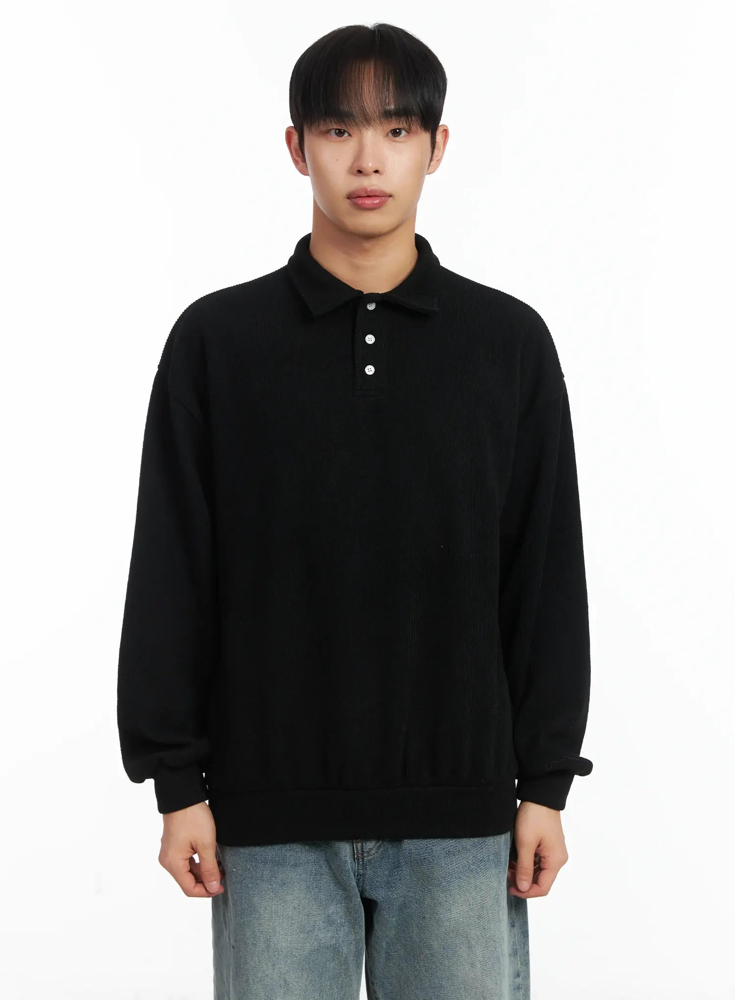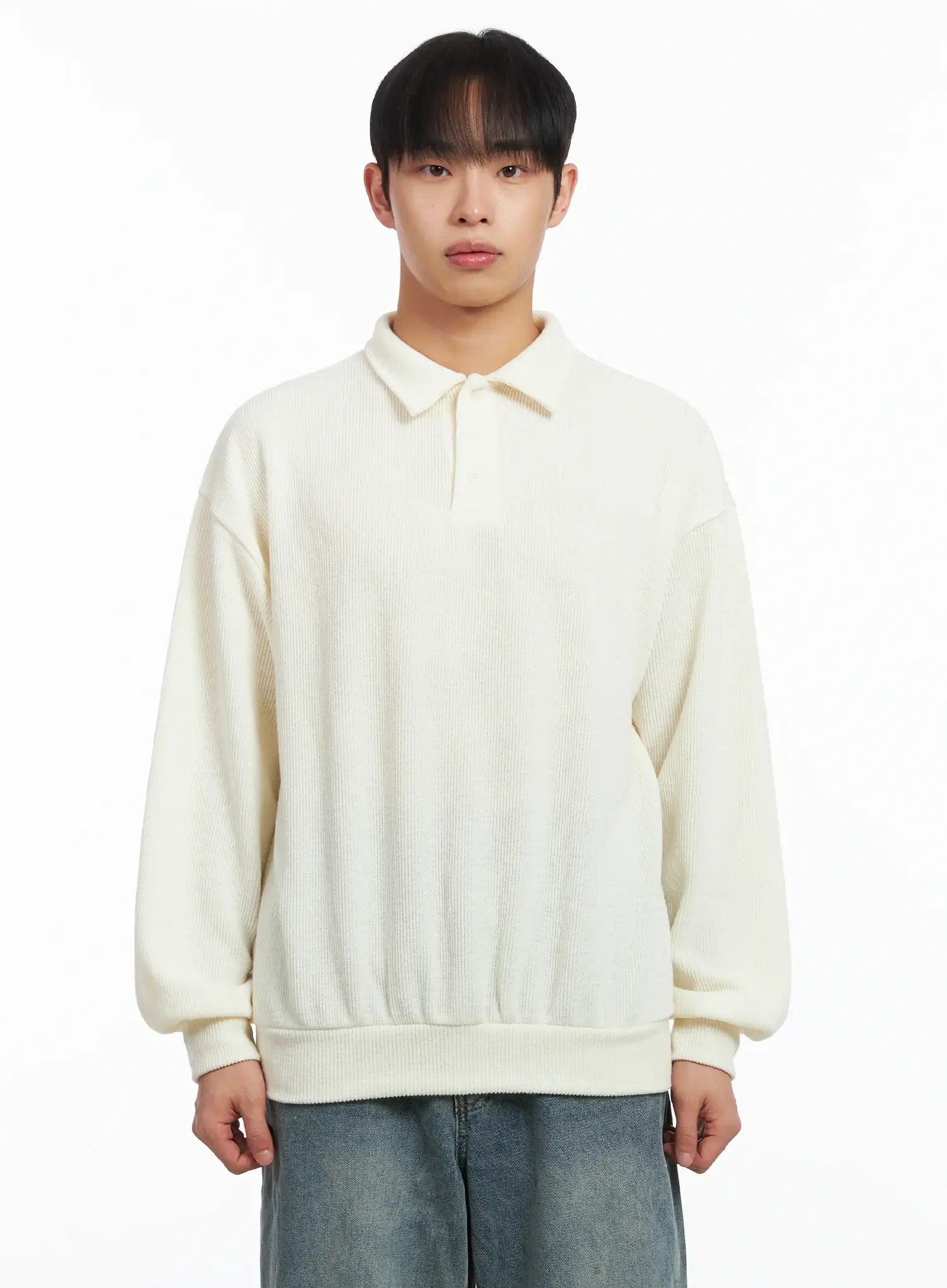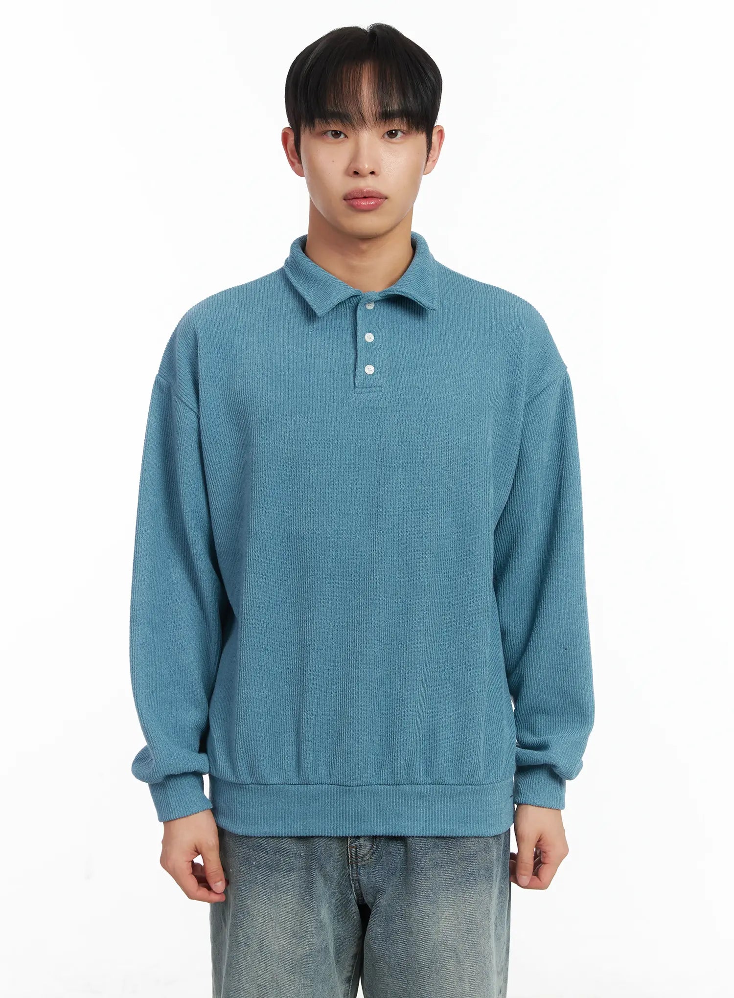 Basic Ribbed Polo Long Sleeve Top ID515