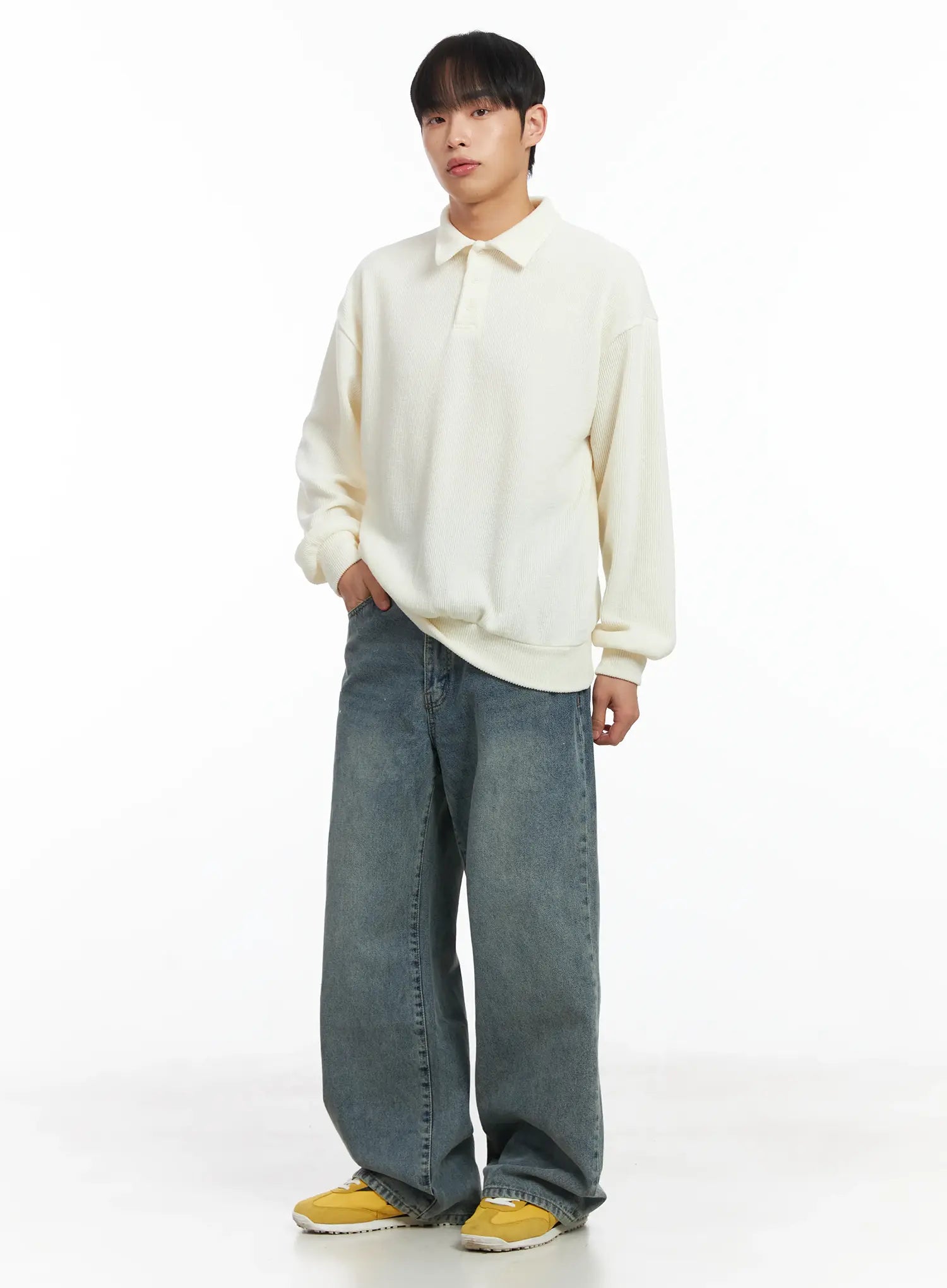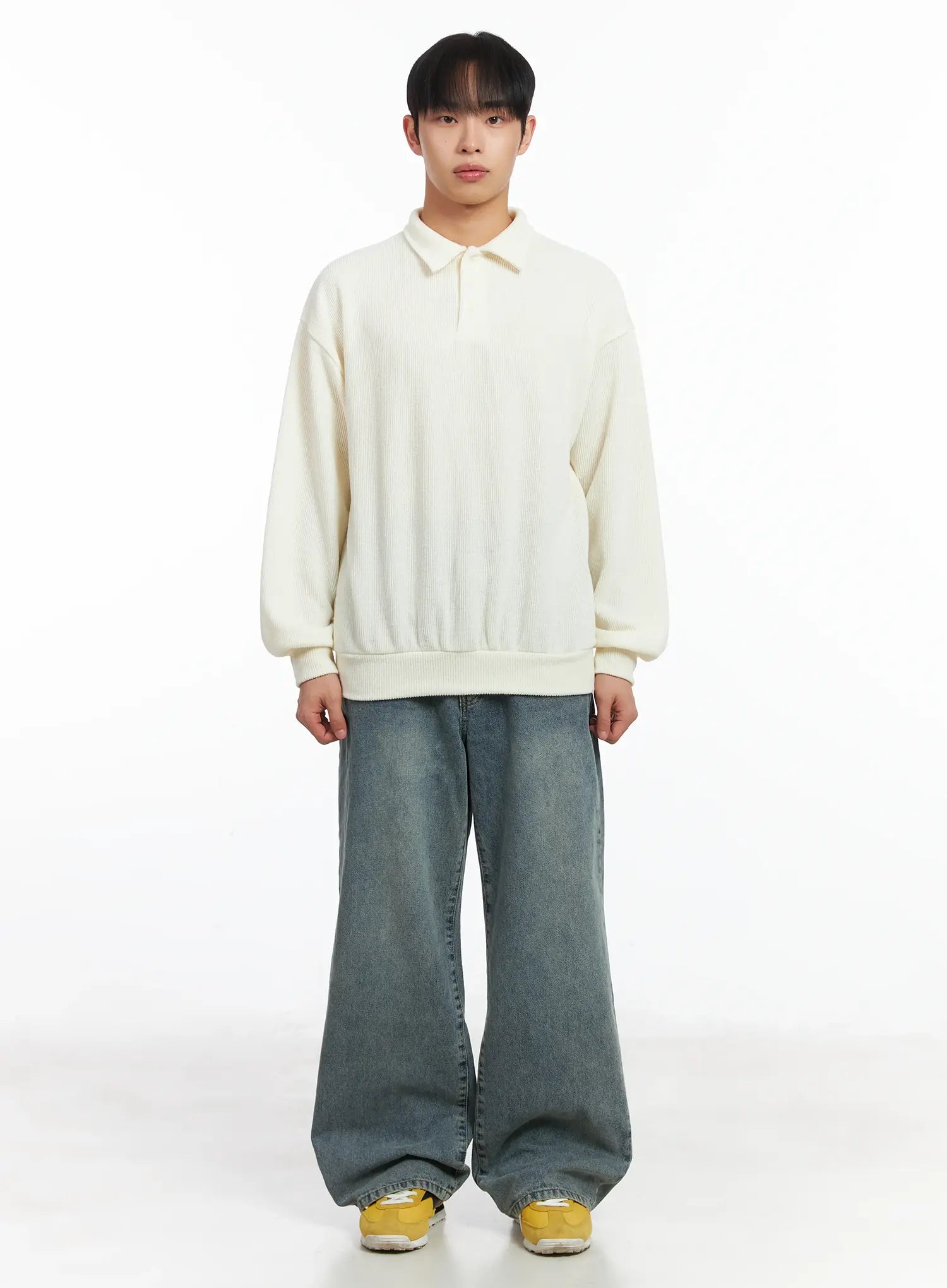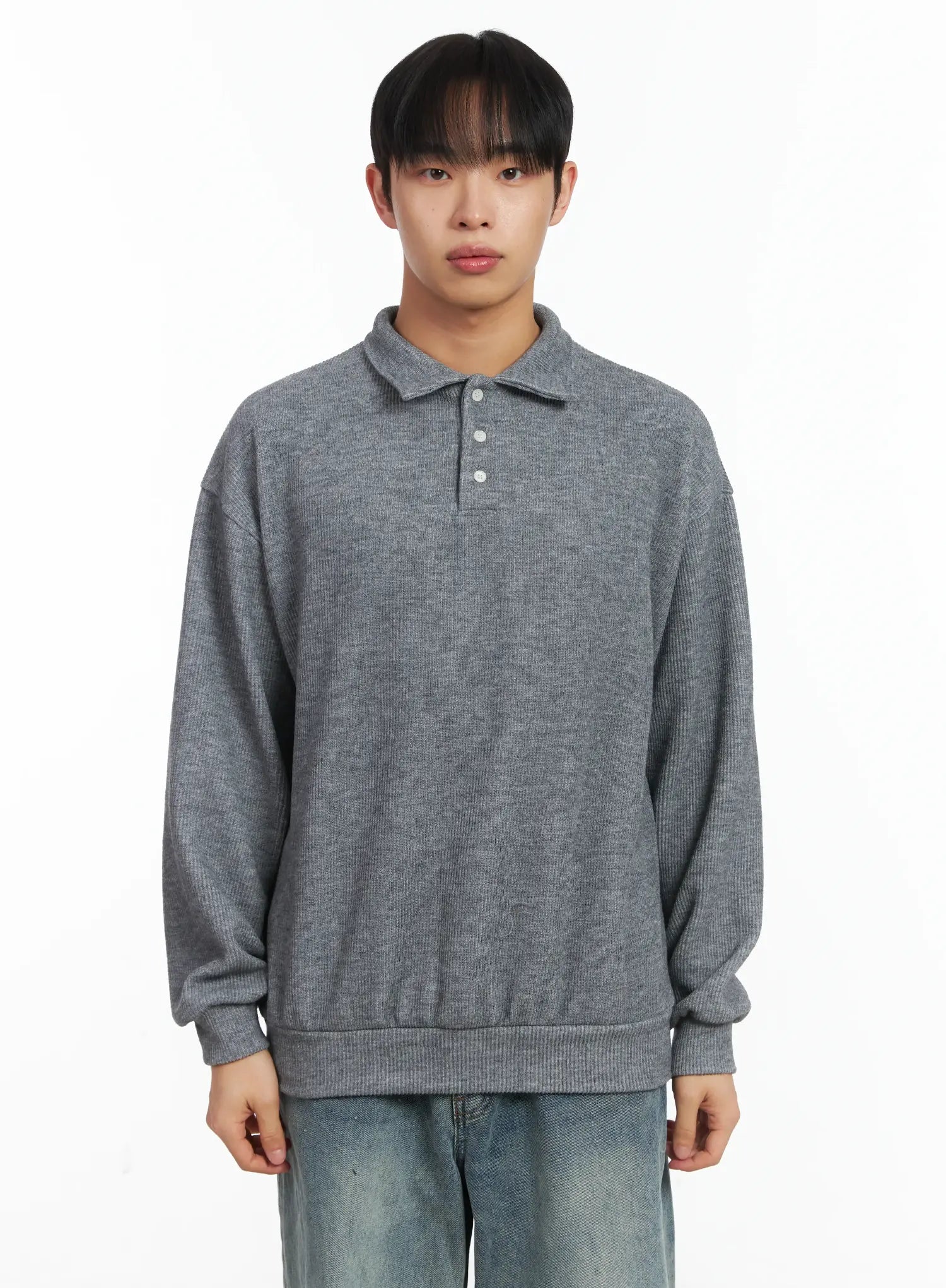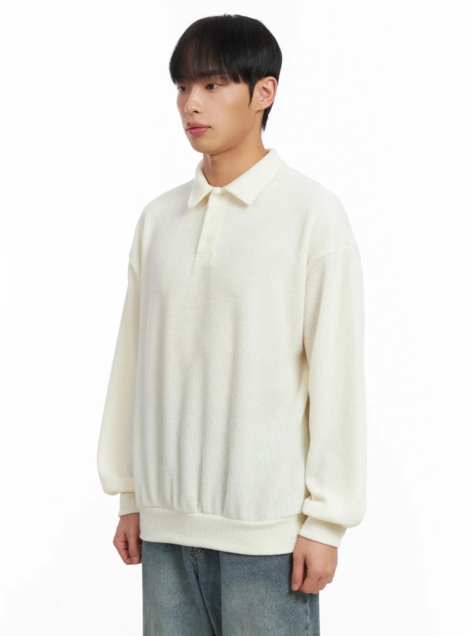 Basic Ribbed Polo Long Sleeve Top ID515