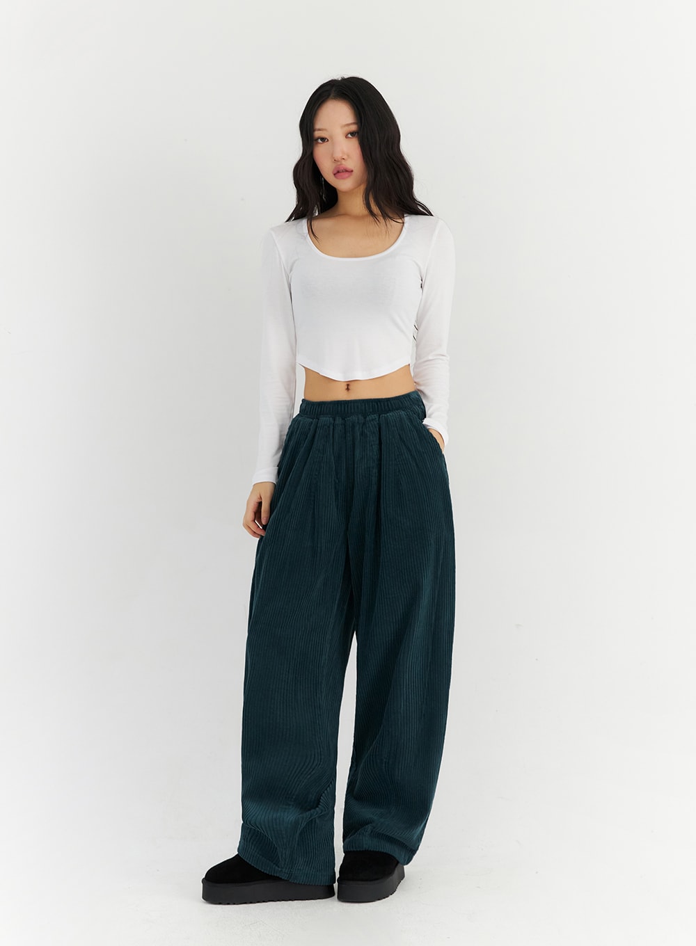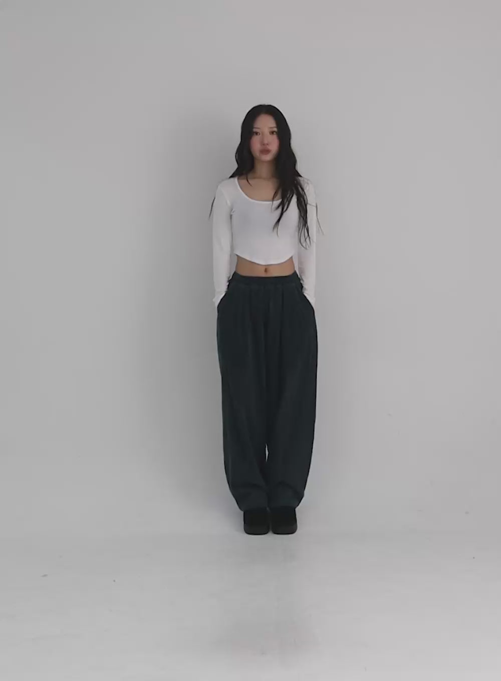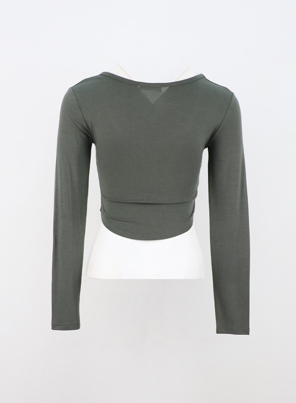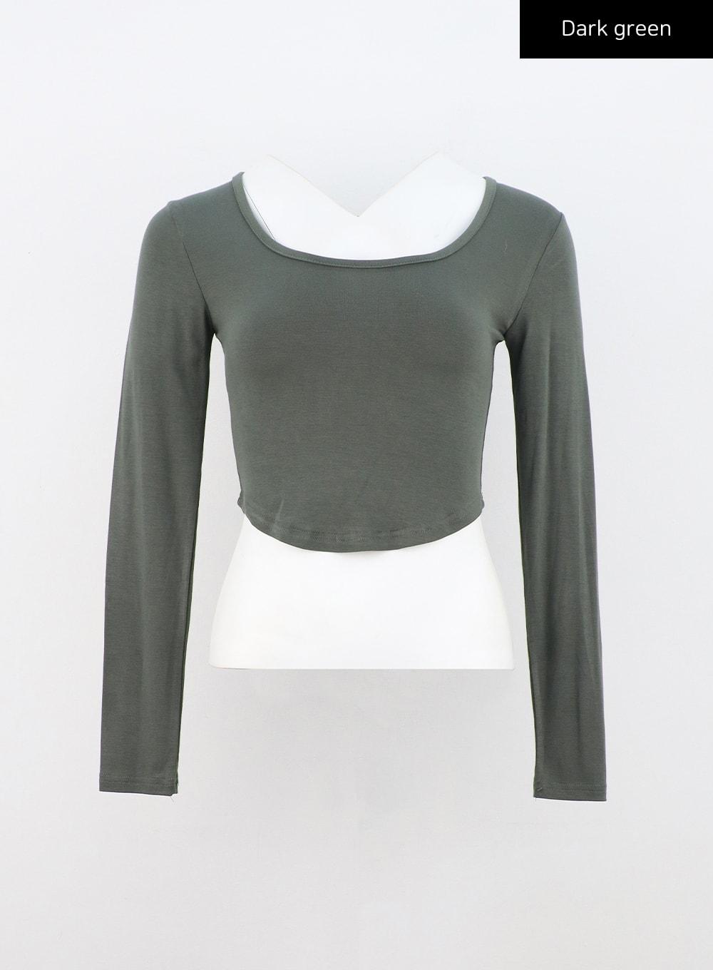 Basic U-Neck Long Sleeve Crop Tee CN303